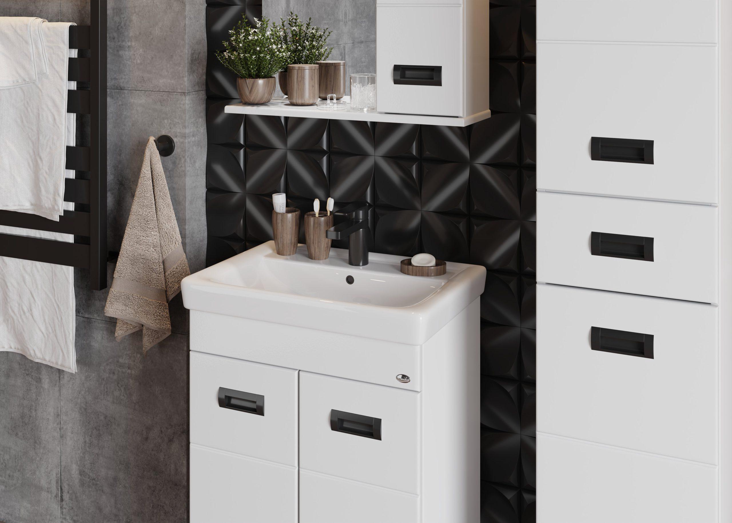 Напольная тумба для ванной комнаты Балтика-Квадро Black 60 - это простые функциональные формы и яркий акцент в любом дизайне.