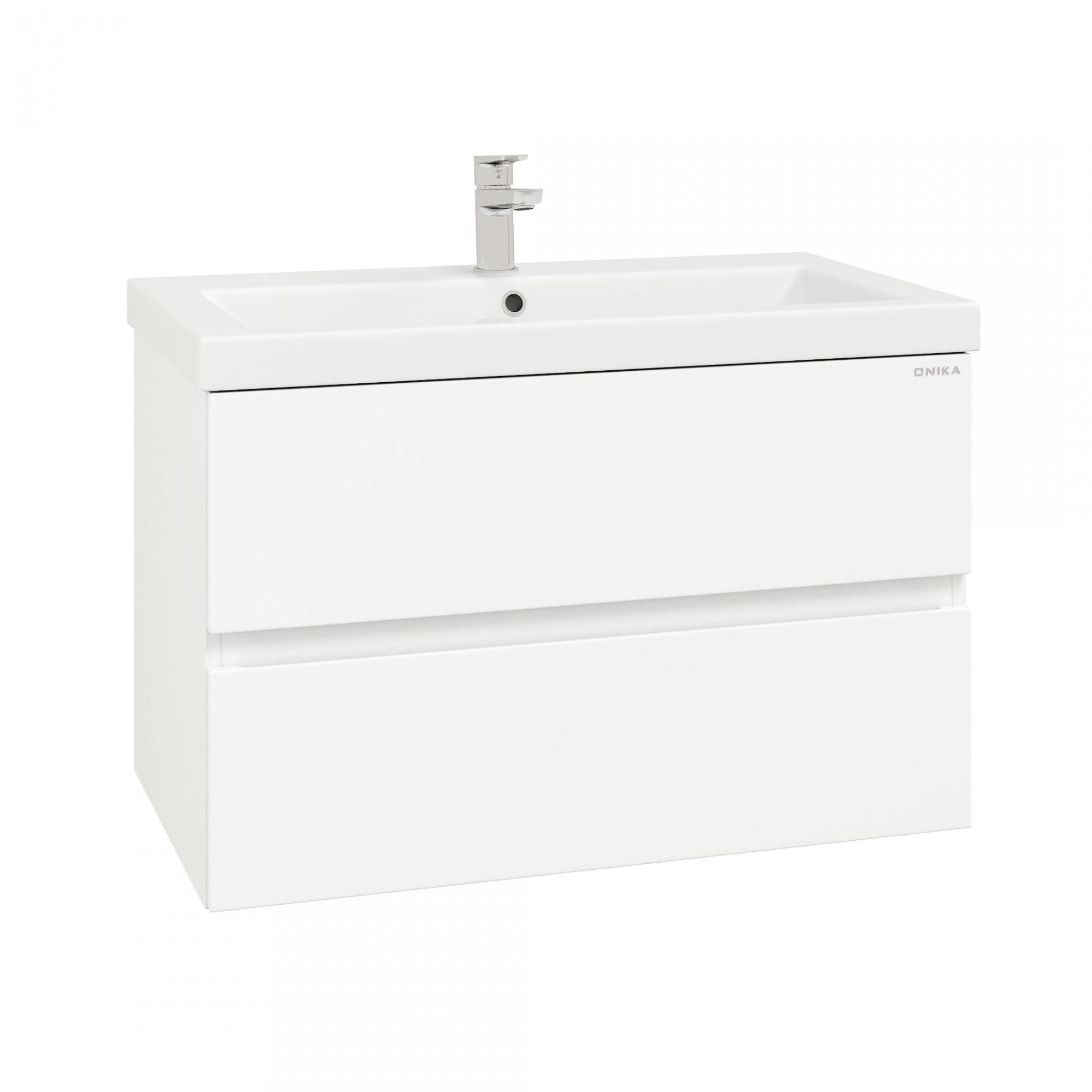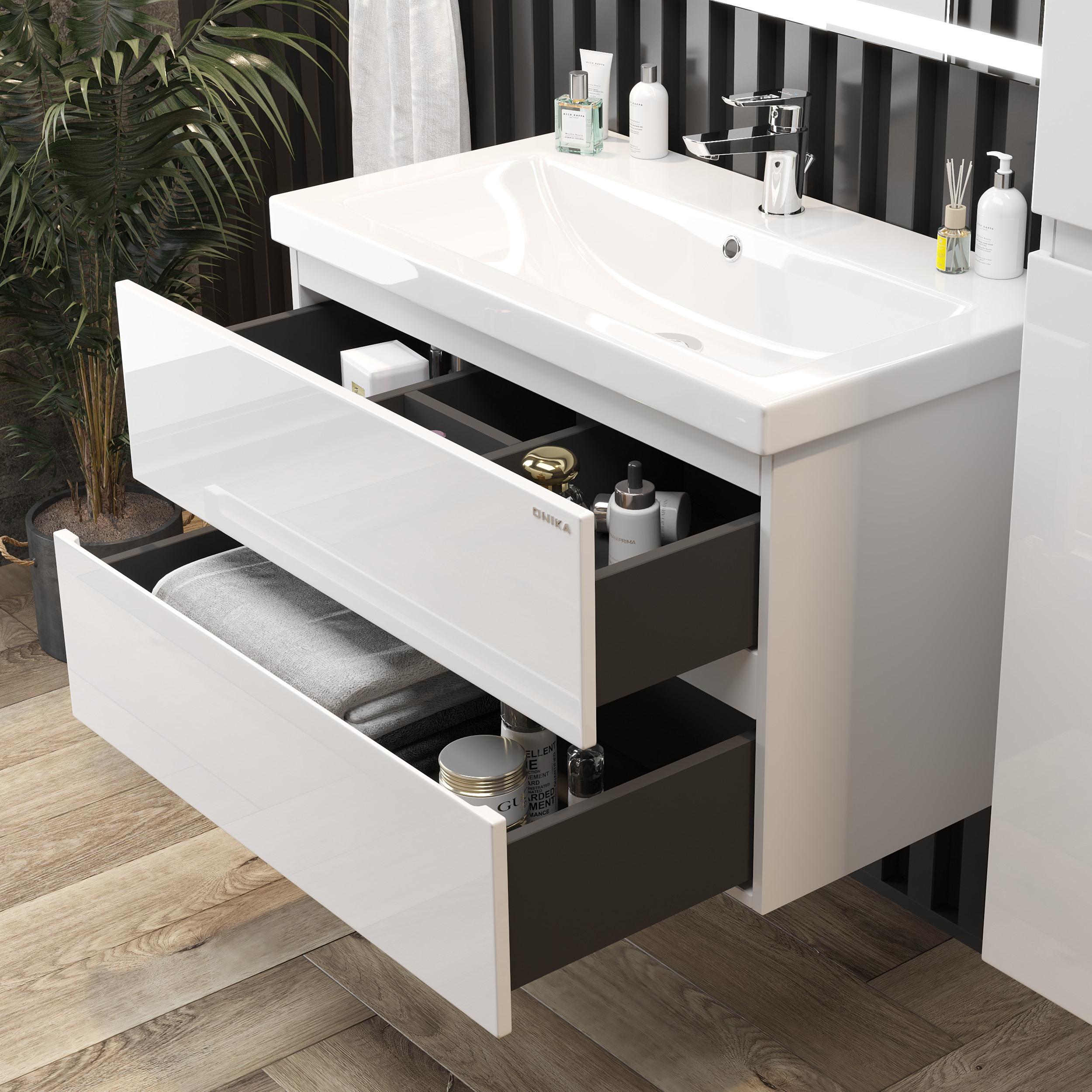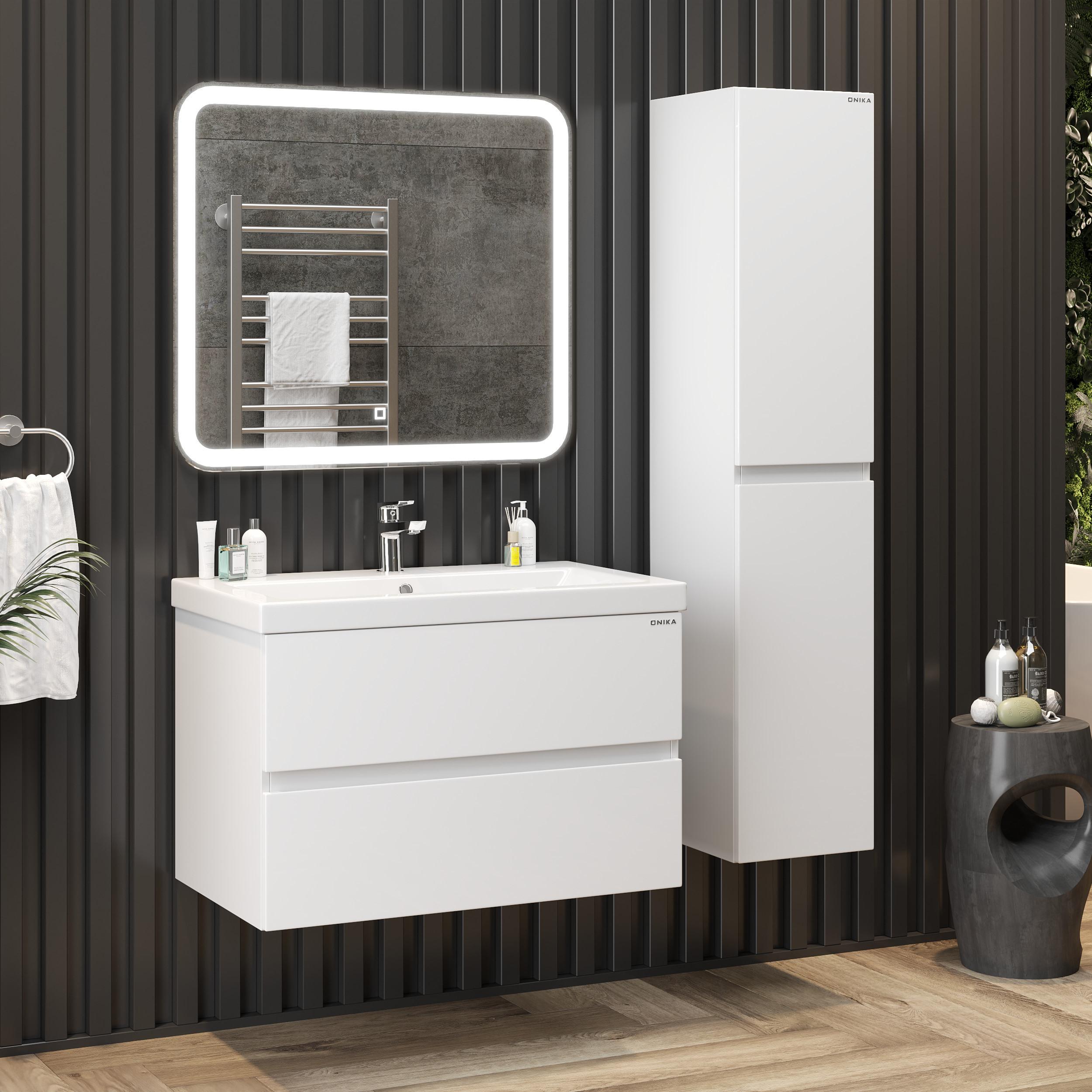 Подвесная тумба для ванной комнаты Onika Эвада 80 сочетает в себе стильный минималистичный дизайн, белую глянцевую поверхность и высочайшее качество исполнения.