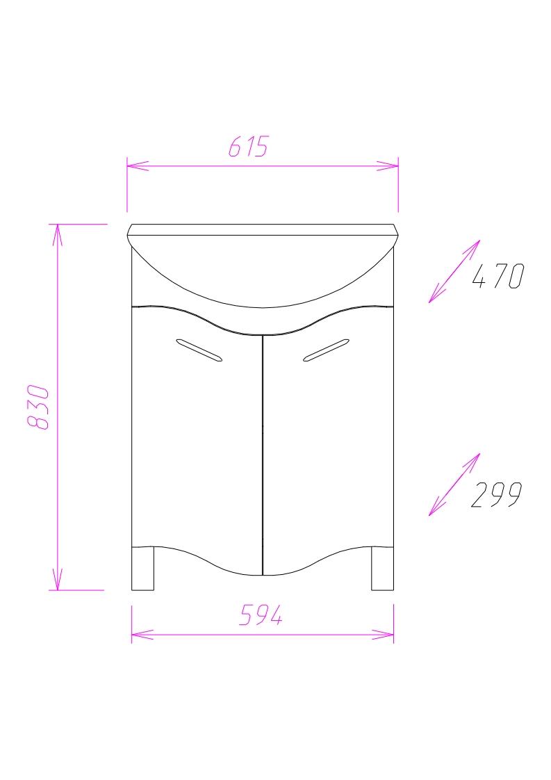 Размеры тумбы без учета раковины и ножек 59х30х75 см.