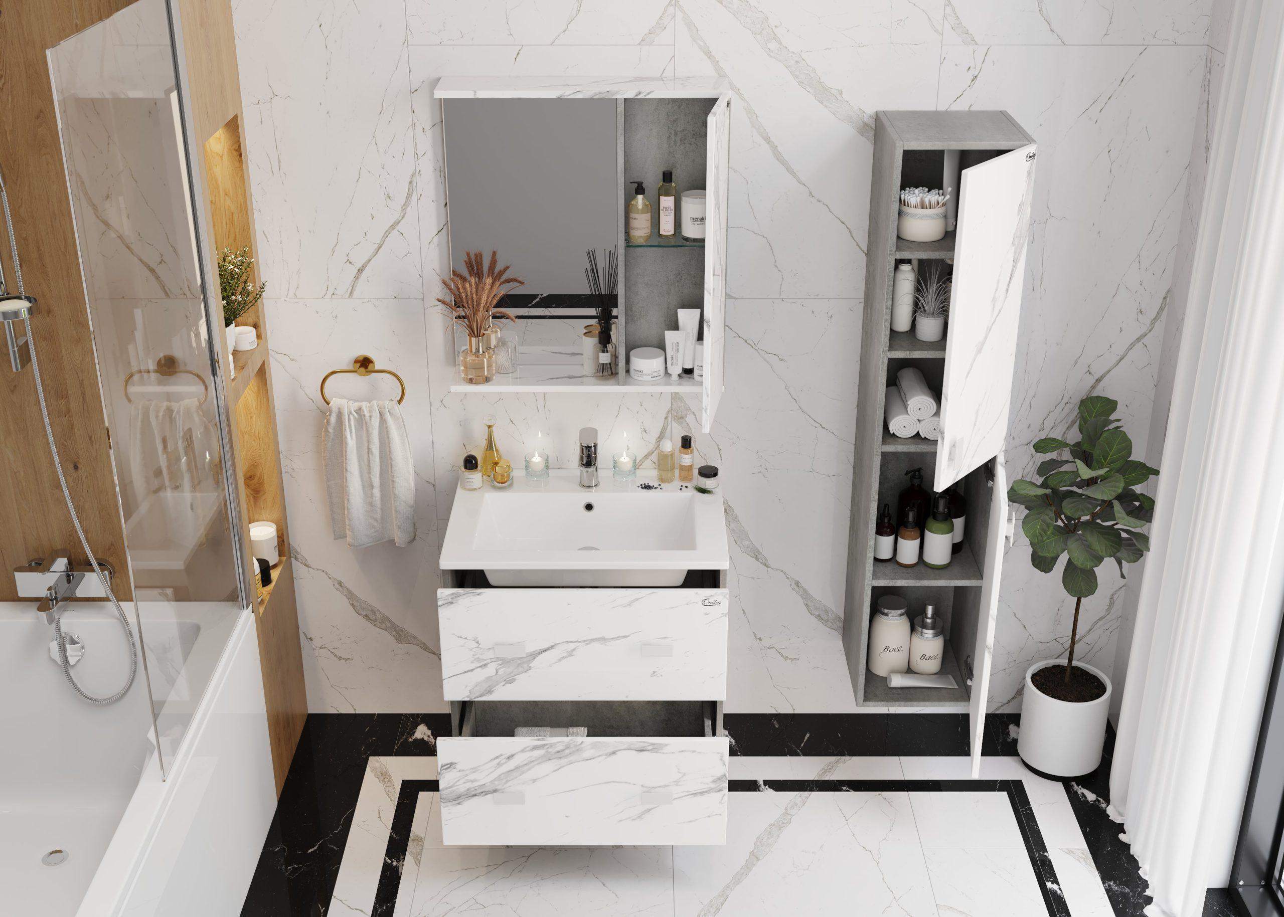 Подвесная тумба Onika Марбл 65 станет стильным и функциональным элементом пространства современной ванной комнаты. Спроектированная дизайнерами в минималистичном облике, тумба отражает самые актуальные расцветки сезона - бетон и мрамор.