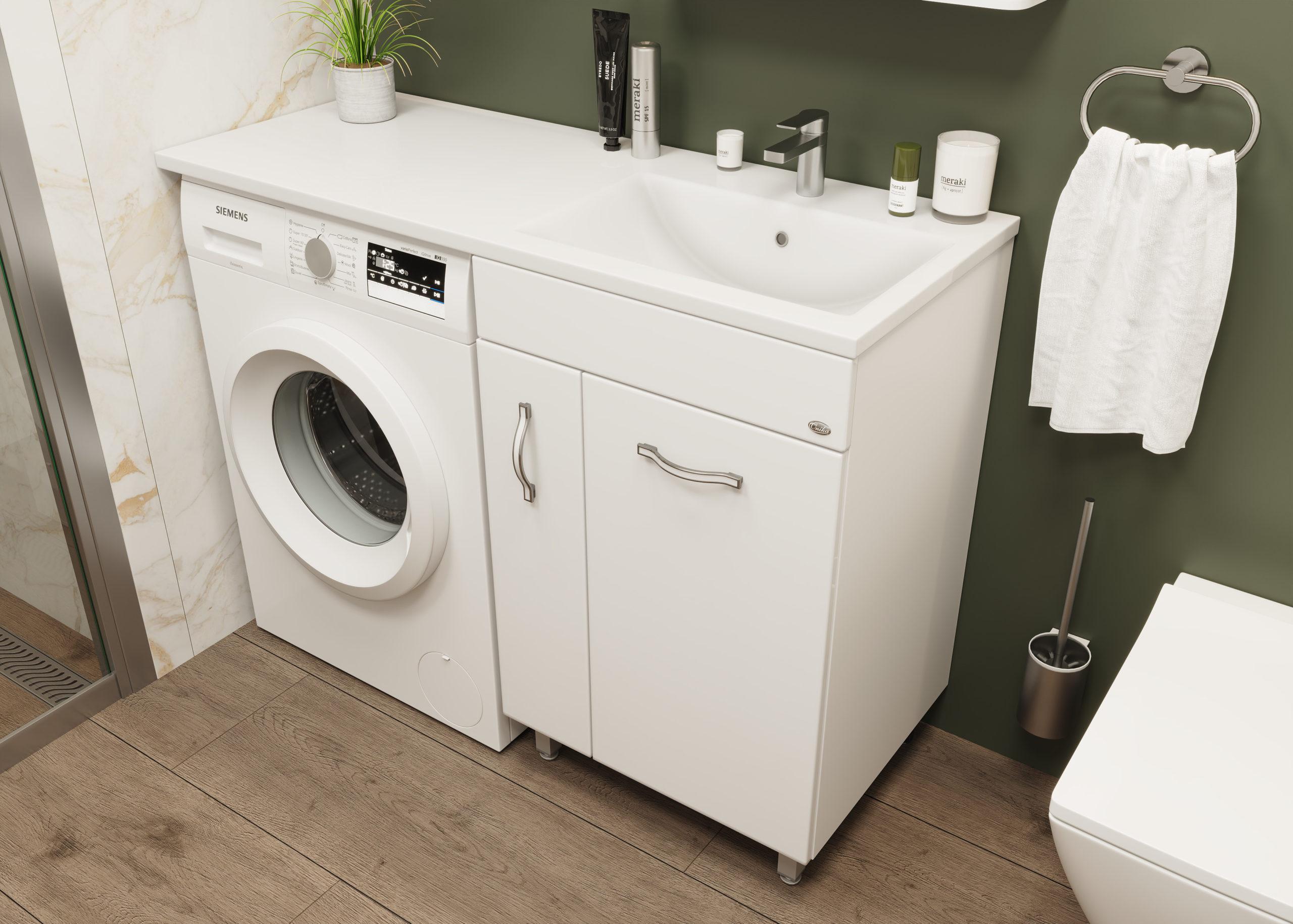 Напольная тумба Onika Нави 60 идеально подходит для небольших санузлов и станет прекрасным решением для совмещения со стиральной машиной.