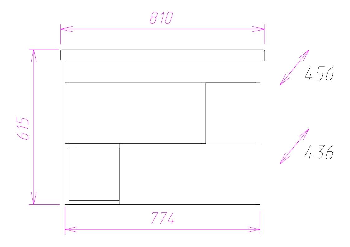 Размеры тумбы без учета раковины 77x44x57 cм.