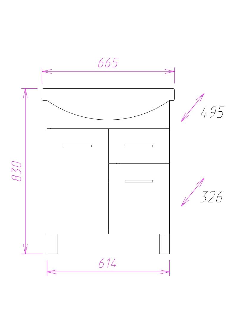 Размеры тумбы без учета раковины и ножек 61x33x68 cм.