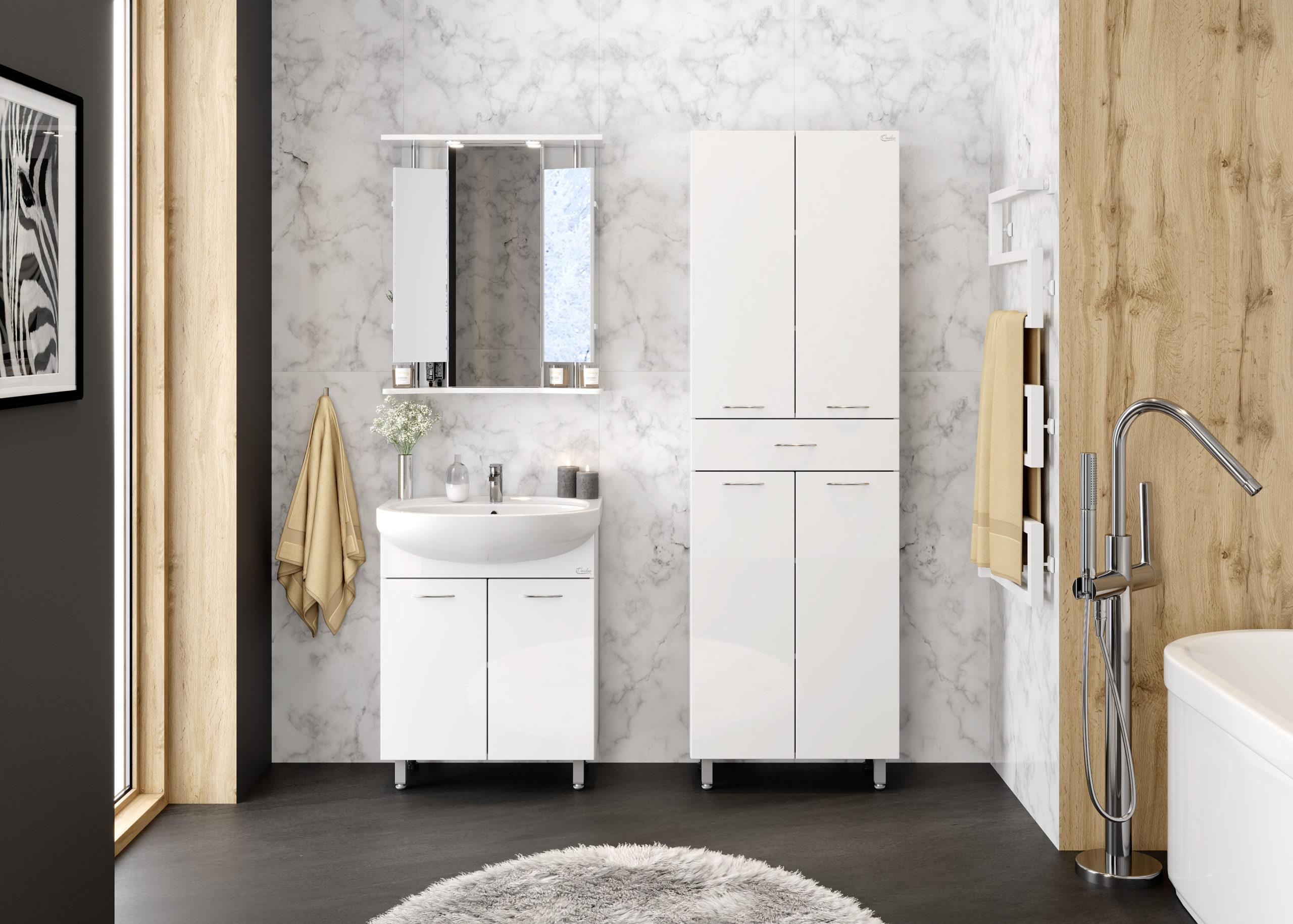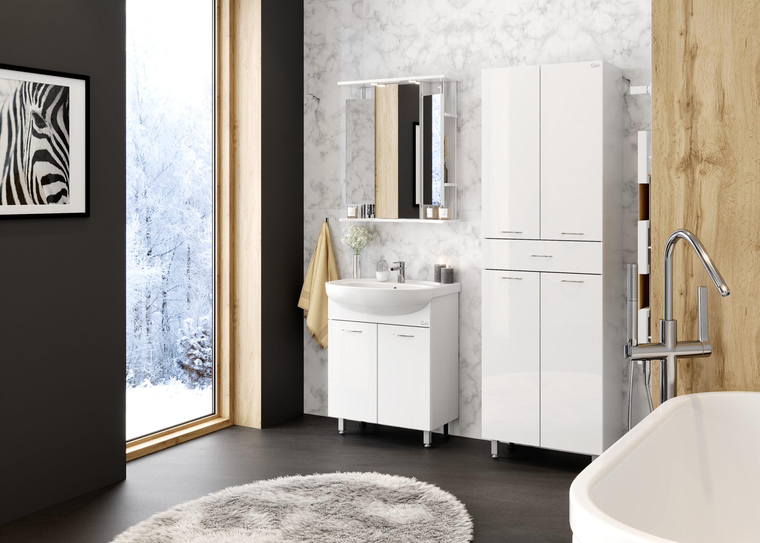 Тумба Onika Стелла 65 - достойный пример удобной мебели для небольшой ванной комнаты.