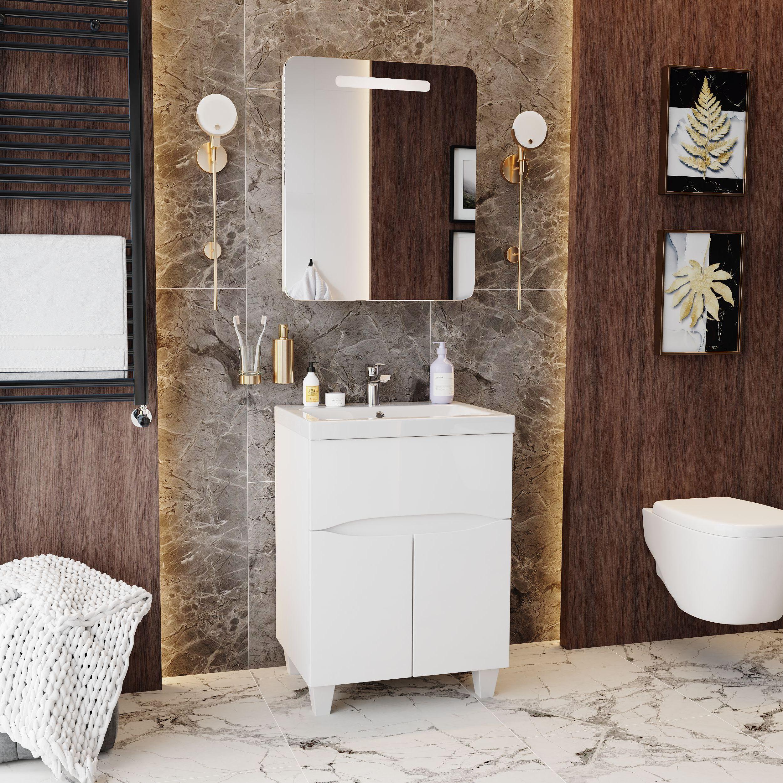 Яркая эстетика строгих линий и блестящий белый глянец - тумба Onika Стрим 60 создана, чтобы наполнить пространство воздухом и сделать особенный свободный интерьер комнаты.