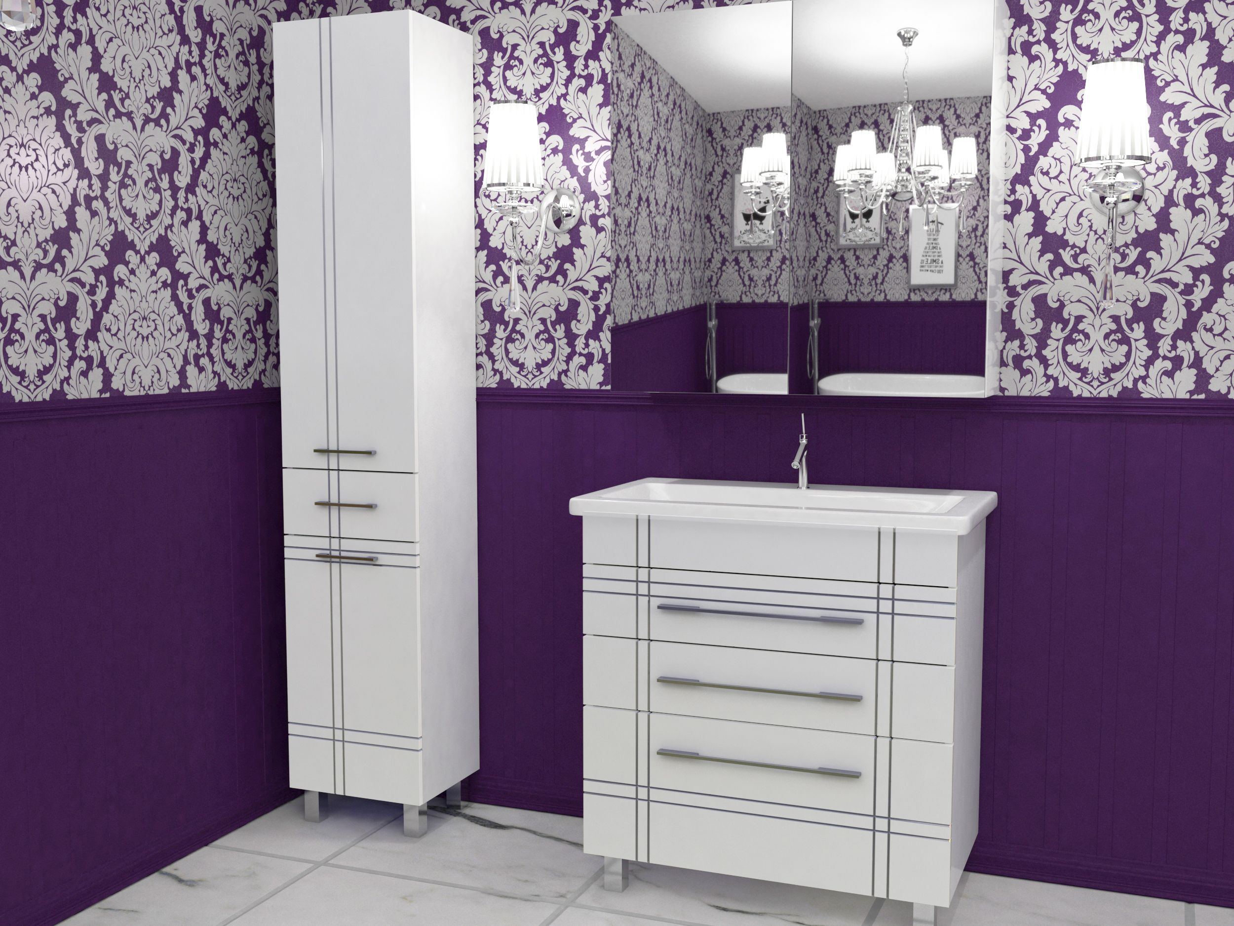 Благородство идеального белого, полученного в результате 6-ти слойного покрытия эмали, в сочетании с серебрянной патиной образуют совершенств форм и сдержанную роскошь. Изделие выполнено из влагостойкого ЛДСП премиум-класса "Lamarty", что обеспечивает превосходный внешний вид и значительно увеличивает срок эксплуатации. Пониженный класс содержания химических веществ в ЛДСП делает мебель максимально экологичной.