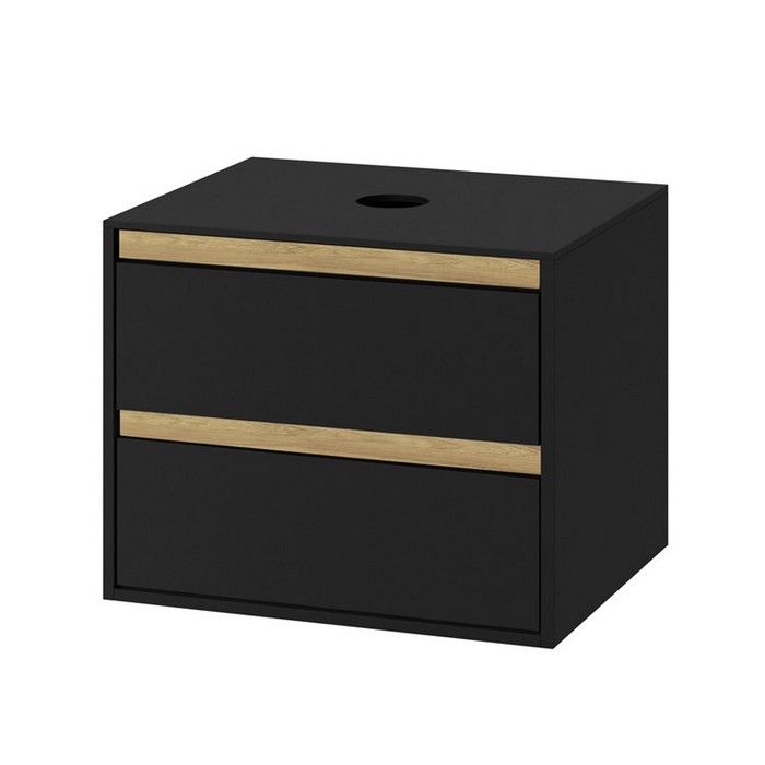 Тумба под накладную раковину EXCELLENT Tuto 80 см (черный матовый/дуб), 2 ящика
