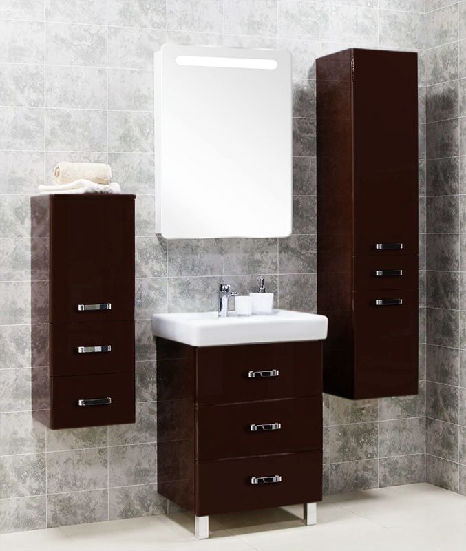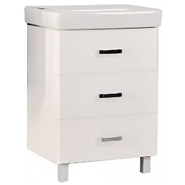 Тумба под раковину Акватон Америна 60 М 1A168901AM010 с тремя выдвижными ящиками и изящными глянцевыми опорами.