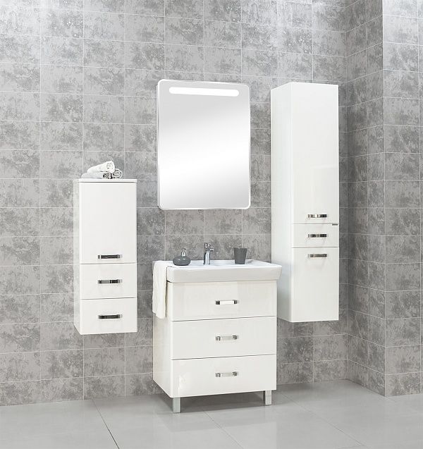 Тумба под раковину Акватон Америна 70 М 1A169001AM010 с тремя выдвижными ящиками и изящными глянцевыми опорами, что удобно в тех ванных комнатах, где стены недостаточно укреплены и есть сомнение, что они выдержат подвесную мебель. Направляющие нижнего крепежа обеспечивают жесткое и надежное крепление ящиков. Плавный ход ящиков со встроенными доводчиками. Дополнительно организовано нижнее подключение труб водоснабжения и канализации. Корпус выполнен из ДСП с ламинированным покрытием, обладает повышенной влагостойкостью и сопротивляемостью износу, не выделяет вредных испарений, хорошо выдерживает воздействие бытовых химических средств, за исключением абразивных материалов и едких веществ и жидкостей. Фасадные детали изготавливаются из МДФ с пятислойной покраской.