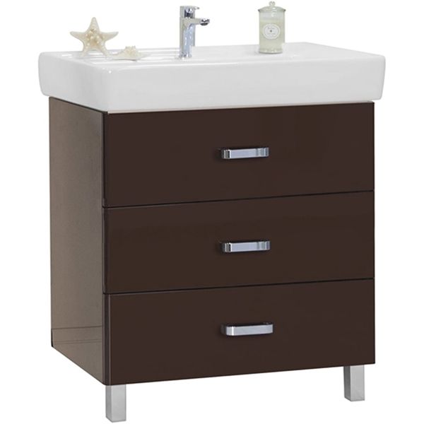 Напольная тумба под раковину Акватон Америна 80 М. Ящики в тумбе установлены на надежные металлические направляющие, рассчитанные на среднюю оптимальную нагрузку 25 кг, устанавливаются на мебельный ящик посредством надвижного монтажа при помощи специальных креплений.