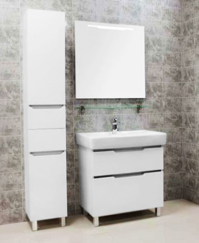 Тумба под раковину Акватон Дакота 80 1A202901DAAY0 на четырех ножках, с двумя навесами, с двумя выдвижными ящиками. Удобные вырезы выполняют функцию ручек. Корпус выполнен из ДСП, обладает повышенной влагостойкостью и сопротивляемостью износу, не выделяет вредных испарений, хорошо выдерживает воздействие бытовых химических средств, за исключением абразивных материалов и едких веществ, и жидкостей. Фасадные детали изготавливаются из МДФ с пятислойной покраской.