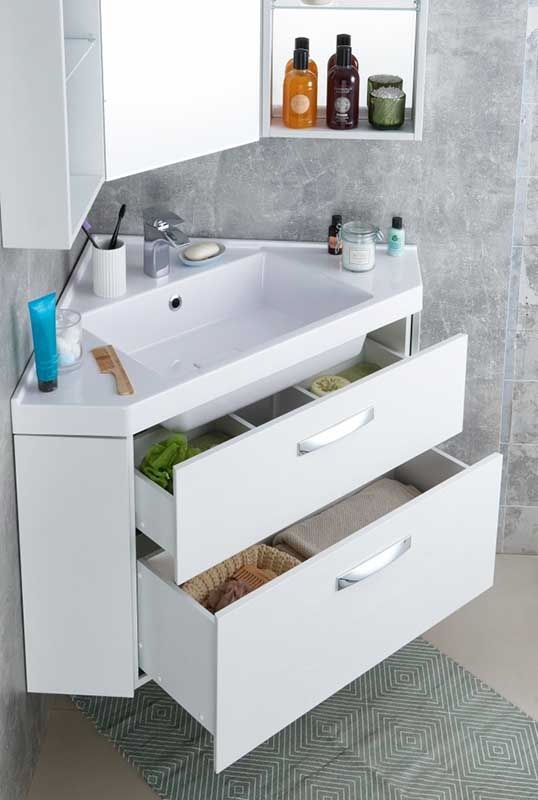 Угловая подвесная тумба под раковину Акватон Кантара 110 1A205601ANW70 с выдвижными ящиками и распашными дверцами. Предназначена для использования в ванных комнатах с повышенной влажностью. Текстура дерева, прямые линии и лаконичная фурнитура. Продуманная организация внутреннего пространства позволит расположить много принадлежностей, сохранив порядок.
