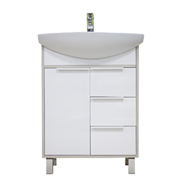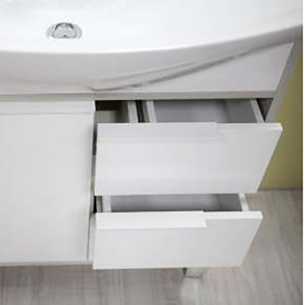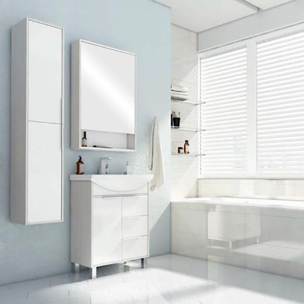 Белоснежный цвет фасадов в сочетании со вставками и боковыми стенками Ясень фабрик придадут вашей ванной комнате ощущения свежести и уюта. Благодаря лаконичным белым ручкам на тумбе и отсутствию лицевой фурнитуры на шкафчике коллекция универсальна, впишется в любую ванную комнату.