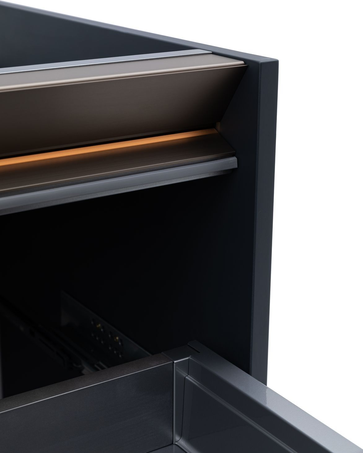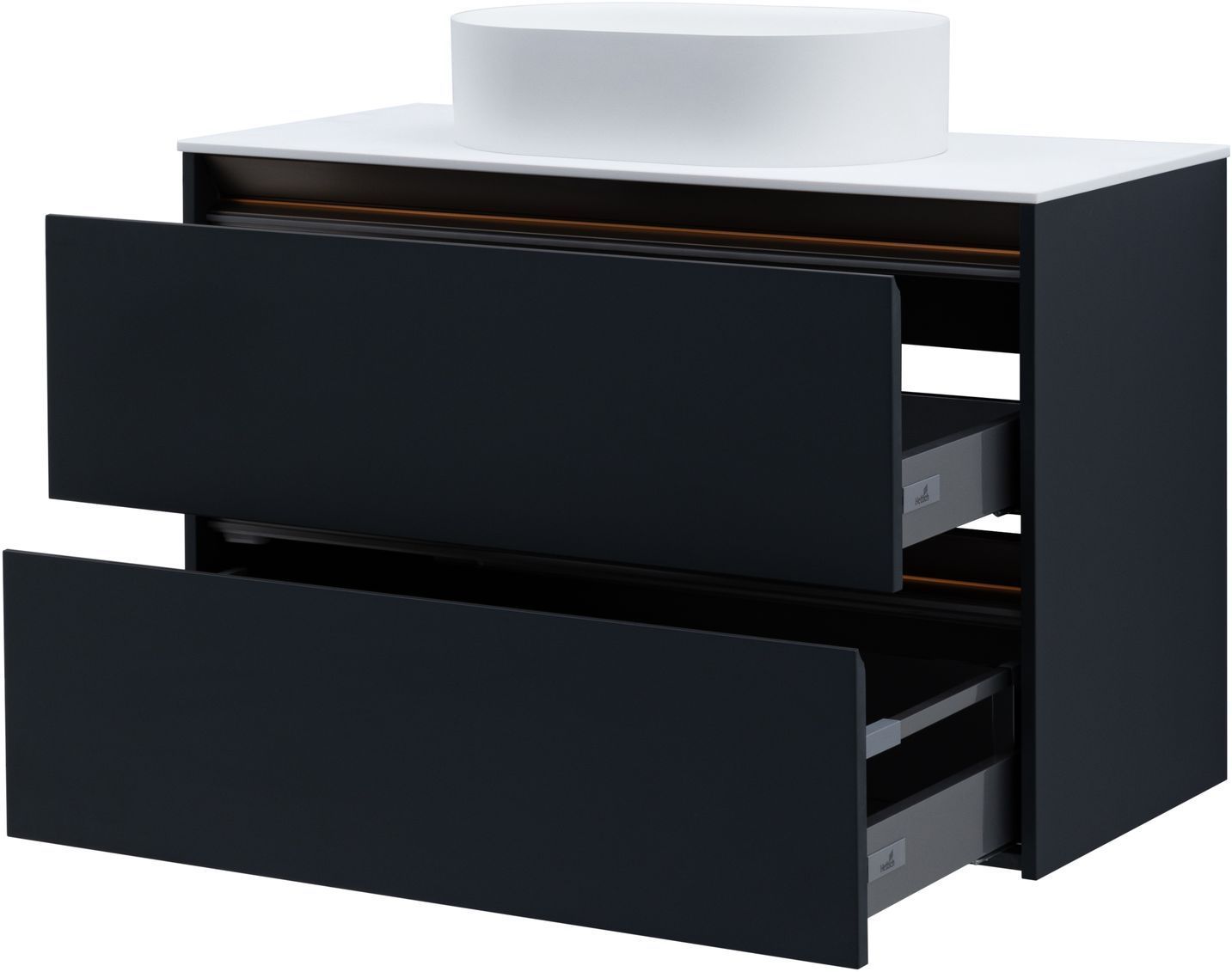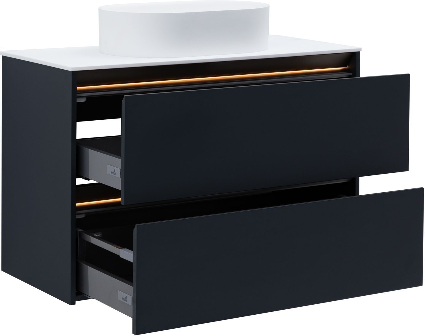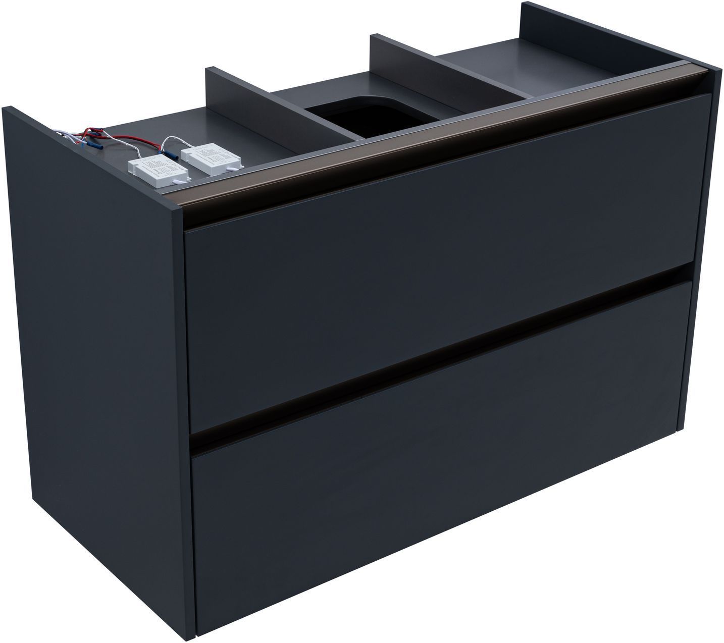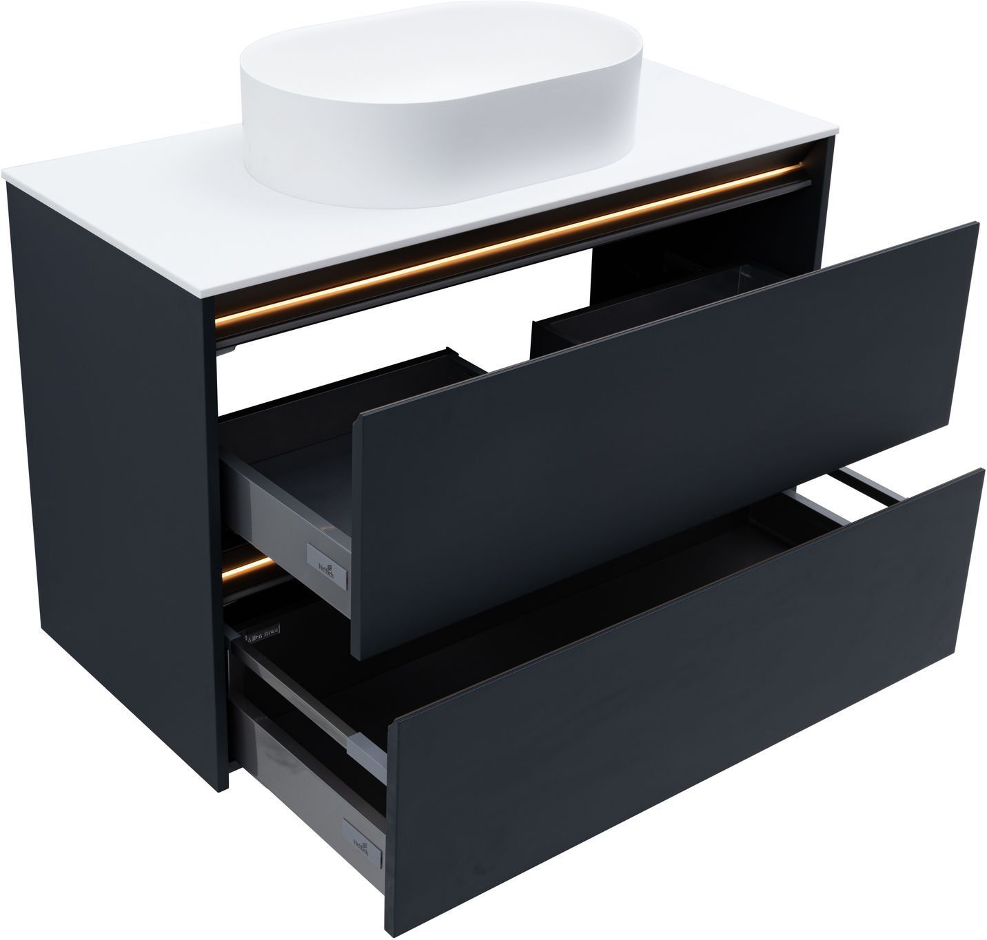 Тумба под накладную раковину Allen Brau из коллекции «Activity» представляет собой элегантное и функциональное дополнение для вашей ванной комнаты. Эта модель тумбы, шириной 100 см, имеет привлекательный темно-серый цвет, который придаст интерьеру современный шарм. Подвесная конструкция тумбы под раковину обеспечивает легкость и простоту монтажа, а материал корпуса ВЛДСП и материал фасада МДФ гарантируют прочность и долговечность. Матовое эмалевое покрытие корпуса и фасада добавляет изысканности и легкости в уходе. Корпус мебели на верхнем торце фасада имеет металлический декоративный профиль в цвете олива. Тумба комплектуется подсветкой в теплом тоне и специальным магнитным датчиком, который позволяет использовать подсветку в 2-х режимах: «декоративная подсветка» - всегда включена и «функциональная подсветка» - включается при открывании ящика. Детали фасада и декоративного профиля установленного на корпусе имеют фрезеровку и наклон 45 градусов, что делает открывание ящиков очень комфортным. Фурнитура тумбы для раковины оснащена доводчиком для плавного закрывания, а два выдвижных ящика обеспечат удобное хранение ваших ванных принадлежностей. Allen Brau Activity — это сочетание стиля, качества и удобства, которое сделает вашу ванную комнату еще более привлекательной и функциональной.