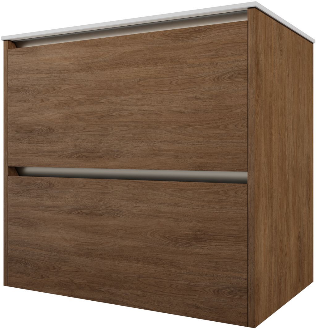 Тумба под накладную раковину Allen Brau из коллекции «Activity» представляет собой элегантное и функциональное дополнение для вашей ванной комнаты. Эта модель тумбы, шириной 70 см, имеет привлекательный светло-коричневый цвет, который придаст интерьеру современный шарм. Подвесная конструкция тумбы под раковину обеспечивает легкость и простоту монтажа, а материал корпуса и фасада МДФ гарантируют прочность и долговечность. Шпонированное покрытие корпуса и фасада добавляет изысканности и легкости в уходе. Корпус мебели на верхнем торце фасада имеет металлический декоративный профиль в цвете олива. Тумба комплектуется подсветкой в теплом тоне и специальным магнитным датчиком, который позволяет использовать подсветку в 2-х режимах: «декоративная подсветка» - всегда включена и «функциональная подсветка» - включается при открывании ящика. Детали фасада и декоративного профиля установленного на корпусе имеют фрезеровку и наклон 45 градусов, что делает открывание ящиков очень комфортным. Фурнитура тумбы для раковины оснащена доводчиком для плавного закрывания, а два выдвижных ящика обеспечат удобное хранение ваших ванных принадлежностей. Allen Brau Activity — это сочетание стиля, качества и удобства, которое сделает вашу ванную комнату еще более привлекательной и функциональной.