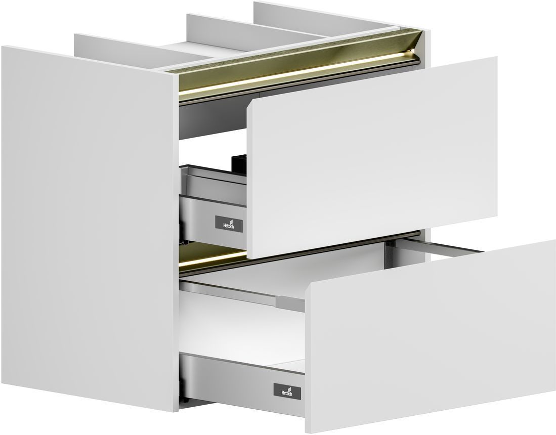 Тумба под накладную раковину Allen Brau из коллекции «Activity» представляет собой элегантное и функциональное дополнение для вашей ванной комнаты. Эта модель тумбы, шириной 70 см, имеет привлекательный белый цвет, который придаст интерьеру современный шарм. Подвесная конструкция тумбы под раковину обеспечивает легкость и простоту монтажа, а материал корпуса ВЛДСП и материал фасада МДФ гарантируют прочность и долговечность. Матовое эмалевое покрытие корпуса и фасада добавляет изысканности и легкости в уходе. Корпус мебели на верхнем торце фасада имеет металлический декоративный профиль в цвете олива. Тумба комплектуется подсветкой в теплом тоне и специальным магнитным датчиком, который позволяет использовать подсветку в 2-х режимах: «декоративная подсветка» - всегда включена и «функциональная подсветка» - включается при открывании ящика. Детали фасада и декоративного профиля установленного на корпусе имеют фрезеровку и наклон 45 градусов, что делает открывание ящиков очень комфортным. Фурнитура тумбы для раковины оснащена доводчиком для плавного закрывания, а два выдвижных ящика обеспечат удобное хранение ваших ванных принадлежностей. Allen Brau Activity — это сочетание стиля, качества и удобства, которое сделает вашу ванную комнату еще более привлекательной и функциональной.