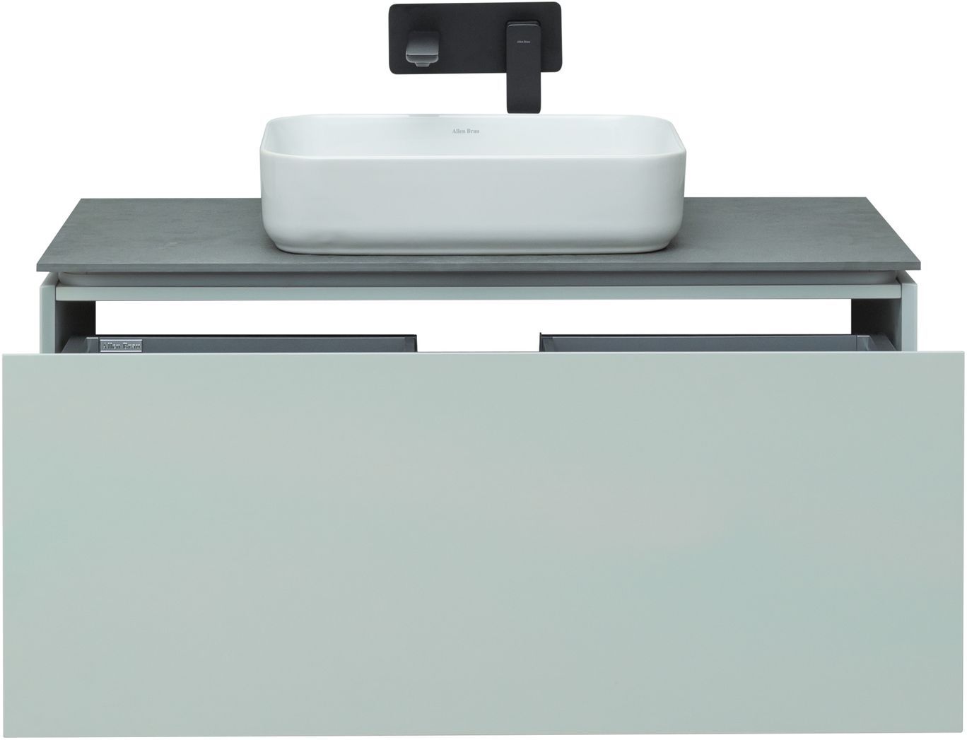 Выдвижные ящики с металлическими боковыми стенками в цвете серый металлик.