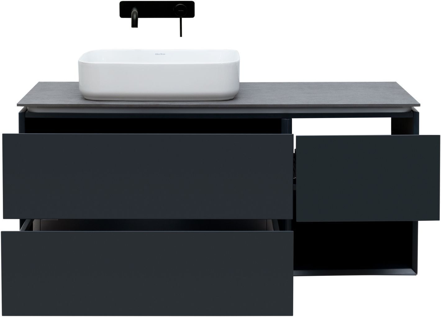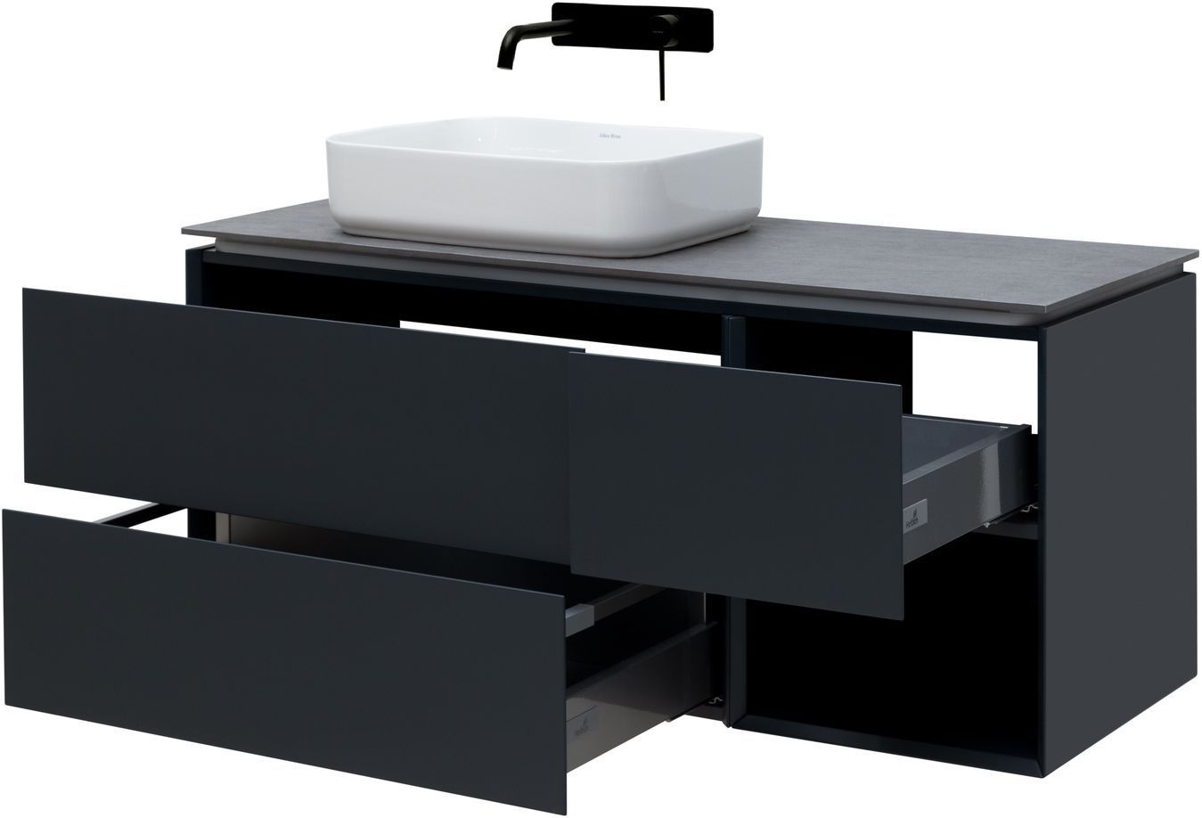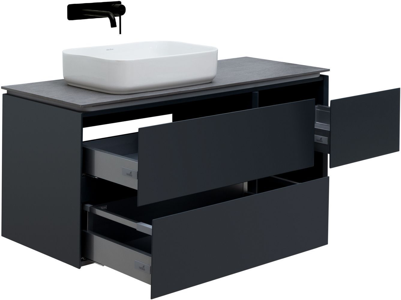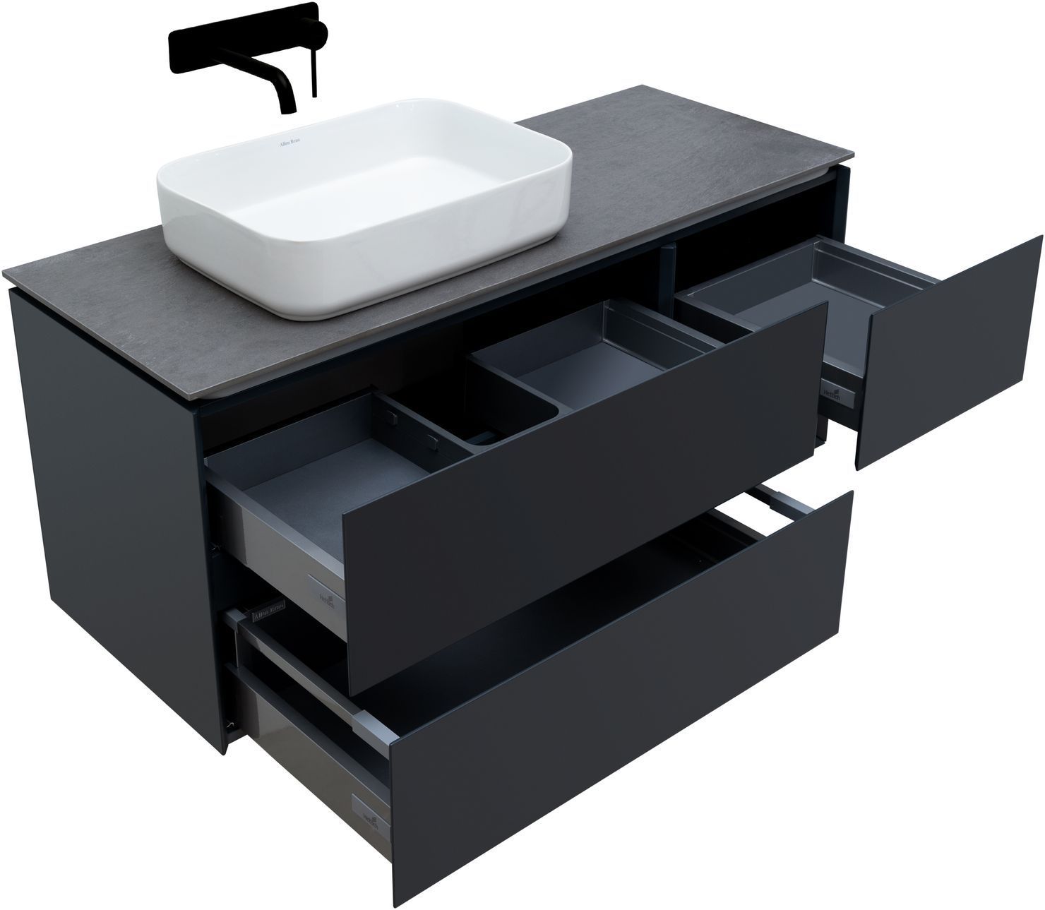Выдвижные ящики с металлическими боковыми стенками в цвете серый металлик.