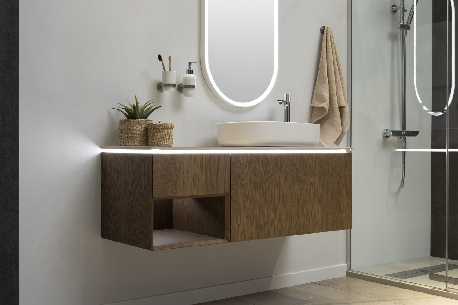 - Вариативность отделок фасадов: матовое покрытие или натуральный шпон дуба