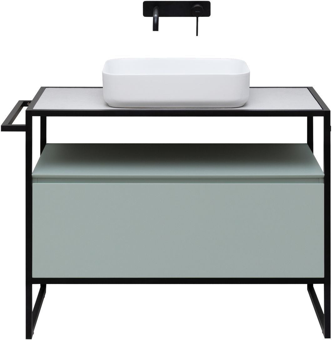 Стильные каркасы тумб и пеналов выполнены из металла, имеют брашированную поверхность с нанесением цвета путем анодирования.