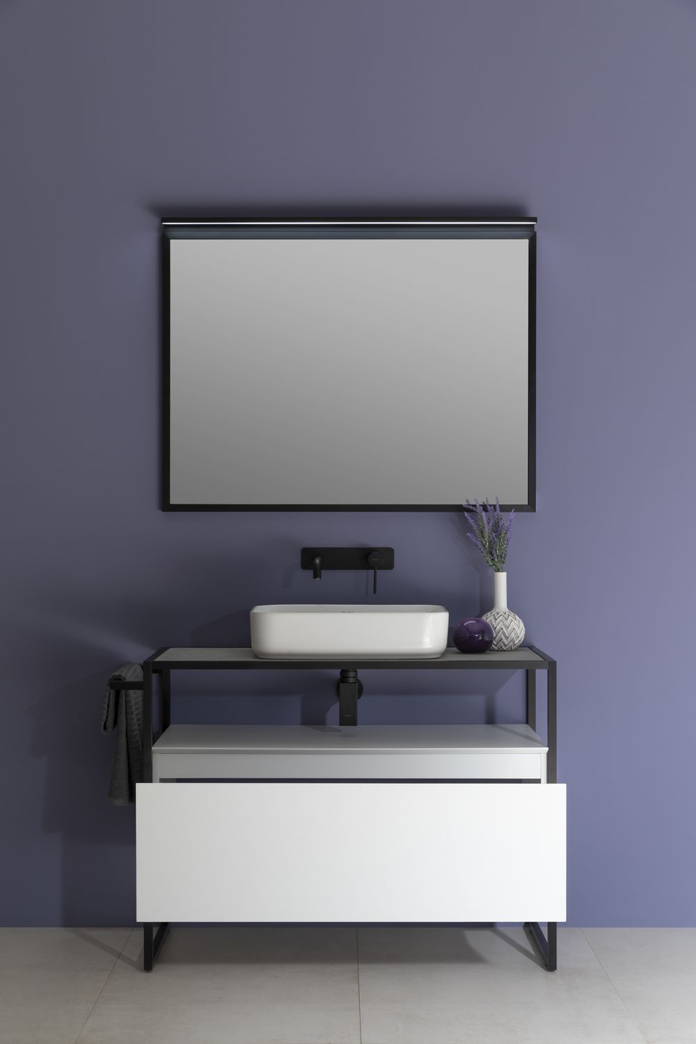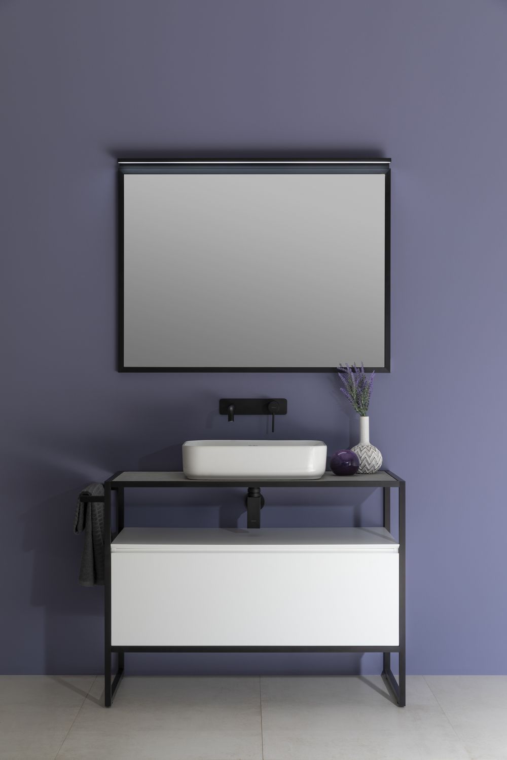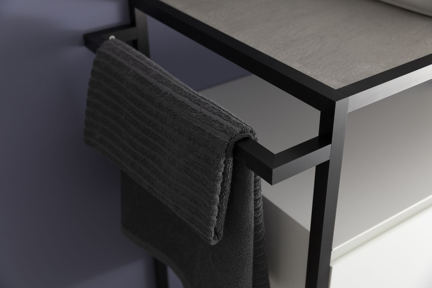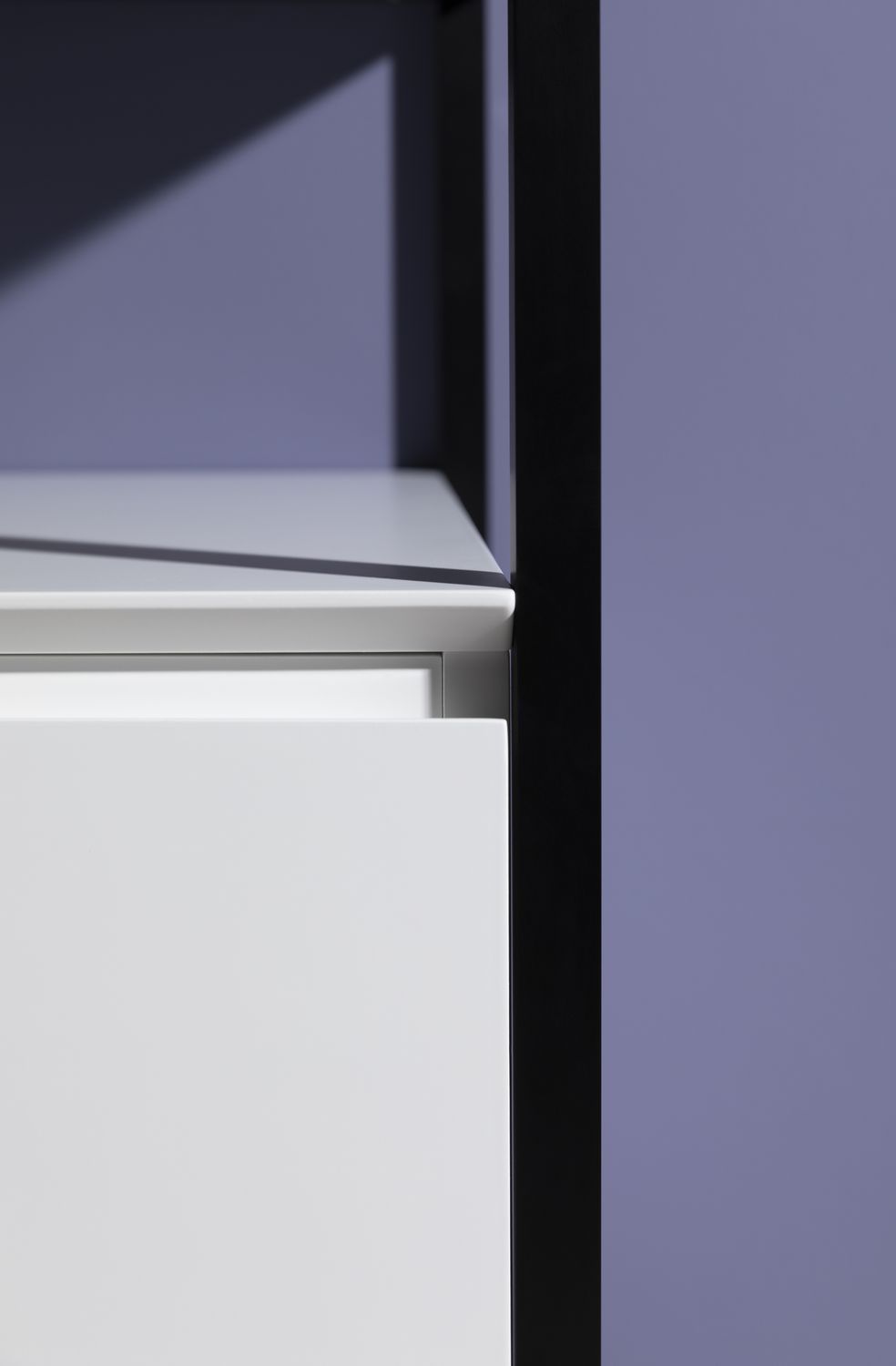Стильные каркасы тумб и пеналов выполнены из металла, имеют брашированную поверхность с нанесением цвета путем анодирования.