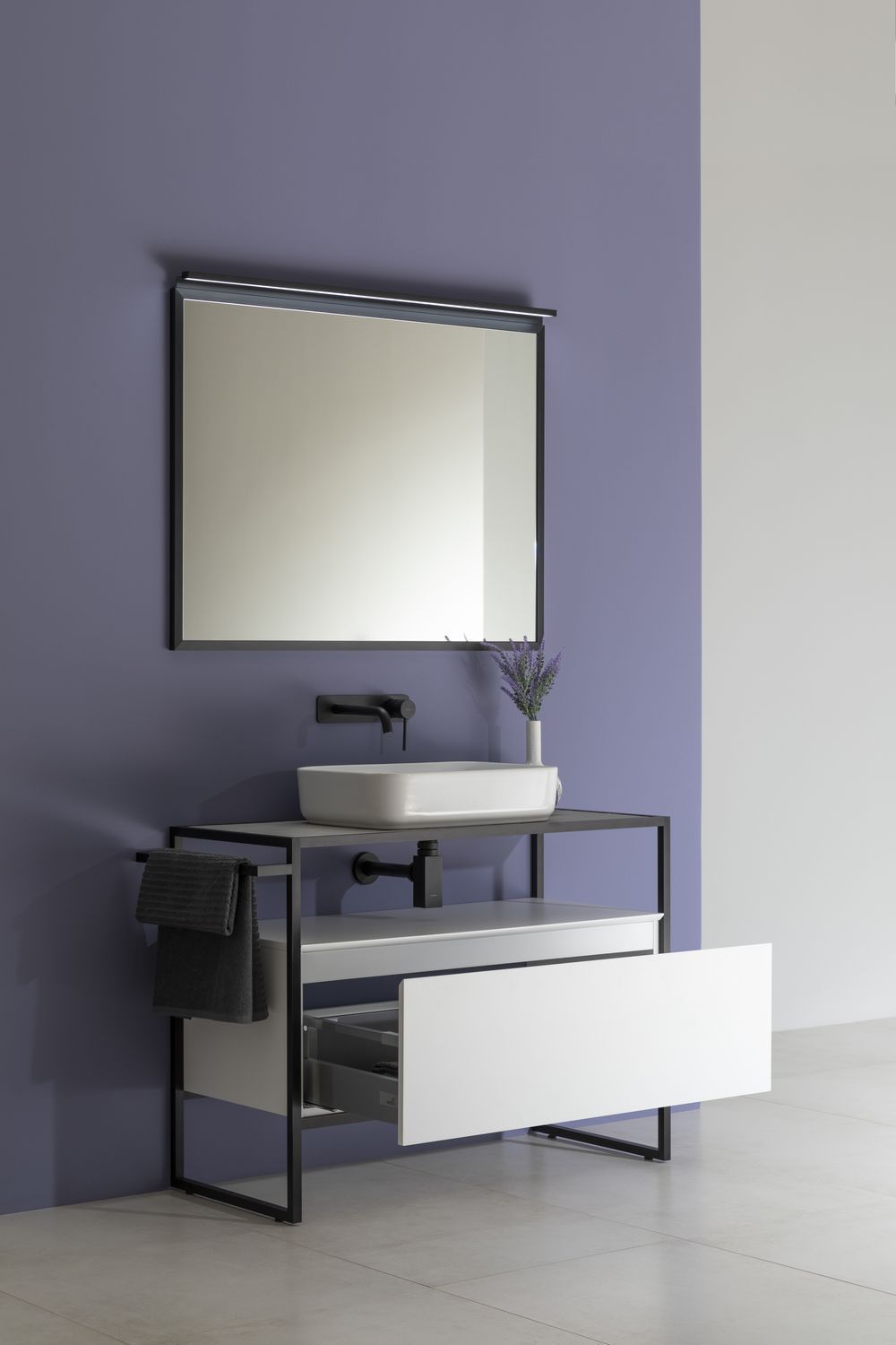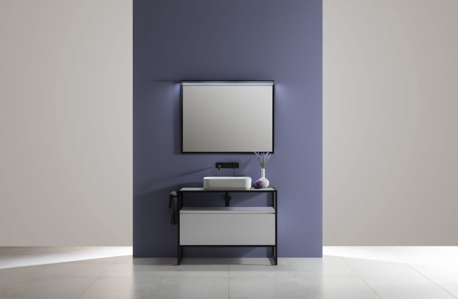 которая устанавливается внутрь профиля. Зеркало PRIORITY повторяет линии каркасов тумбы и пенала.