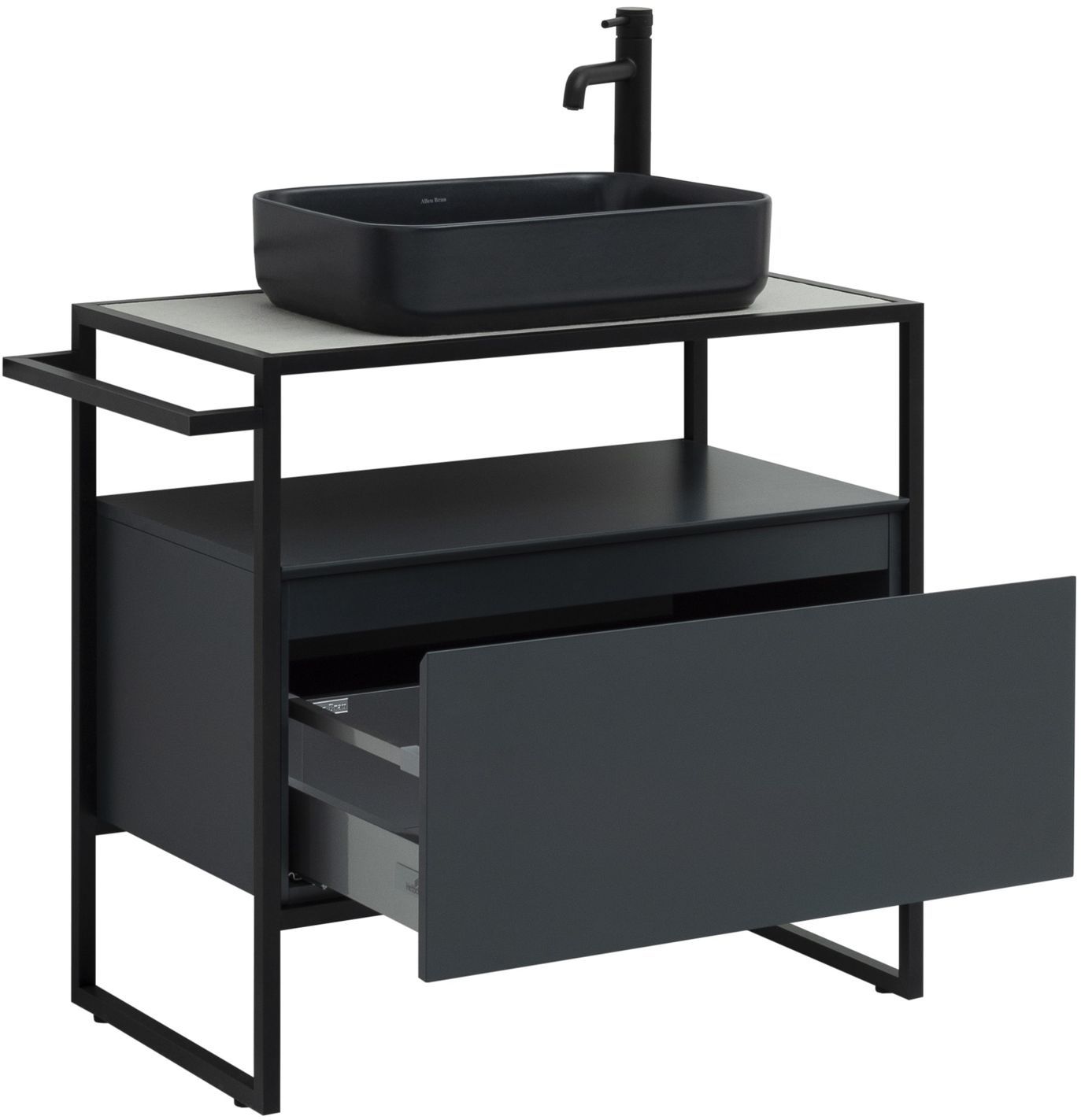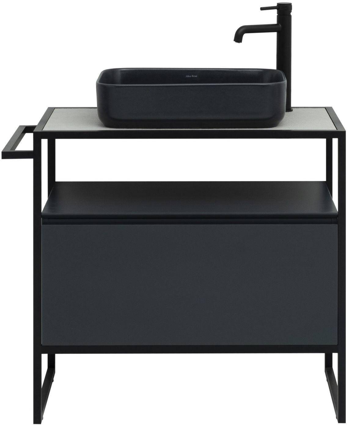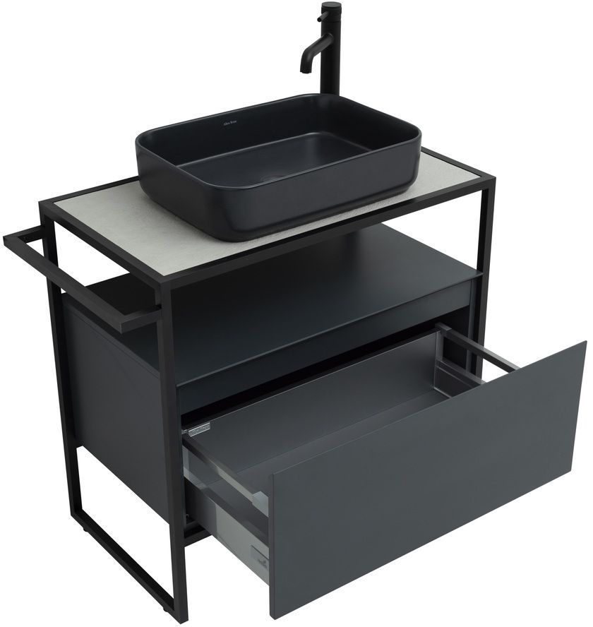 Стильные каркасы тумб и пеналов выполнены из металла, имеют брашированную поверхность с нанесением цвета путем анодирования.