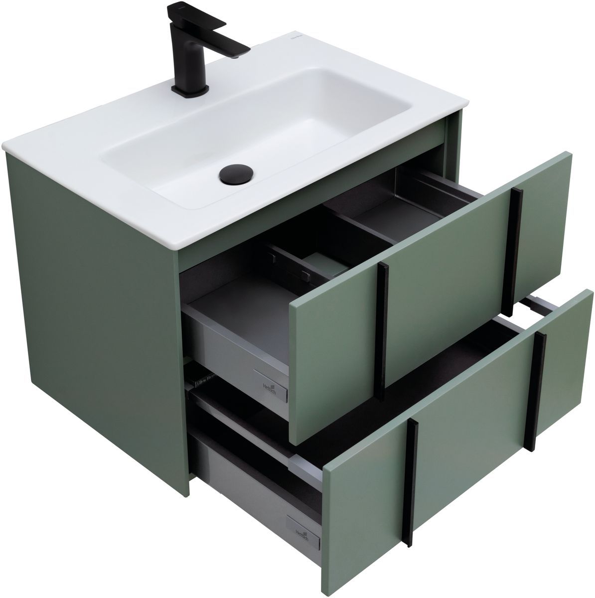 Плавное закрывание ящиков, полное выдвижение, прочное дно (толщина 16 мм), нагрузка до 30 кг.