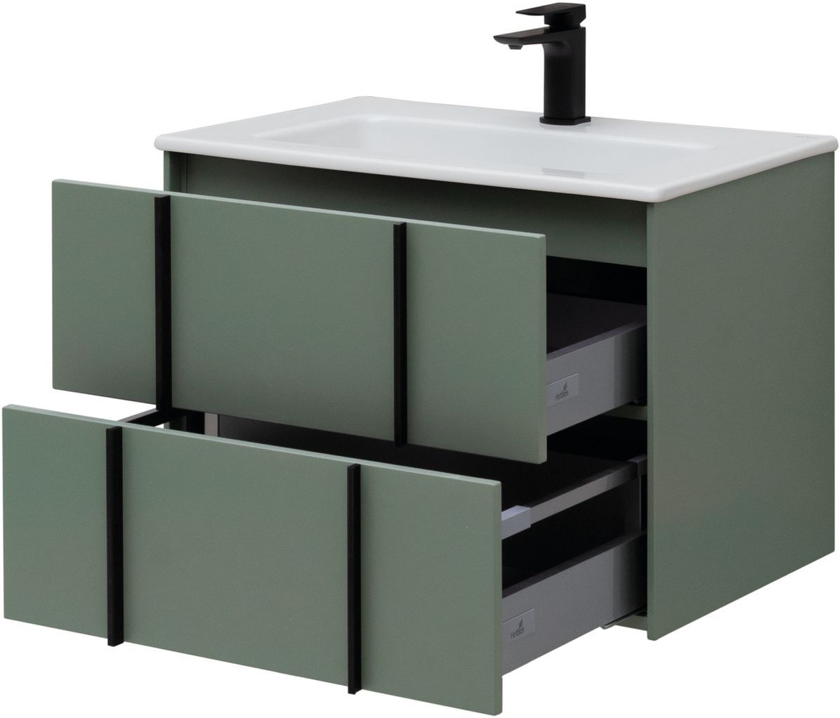 Тумбы оснащены специальной пластиковой рамой, которая надежно защищает вырез под сифон, служит органайзером и позволяет закрепить дополнительный набор контейнеров для хранения.