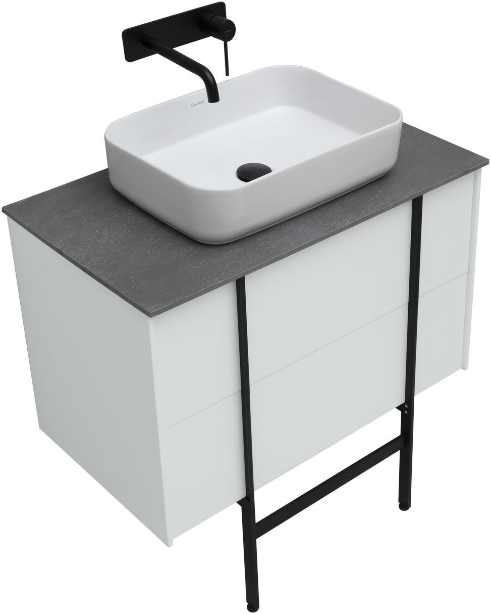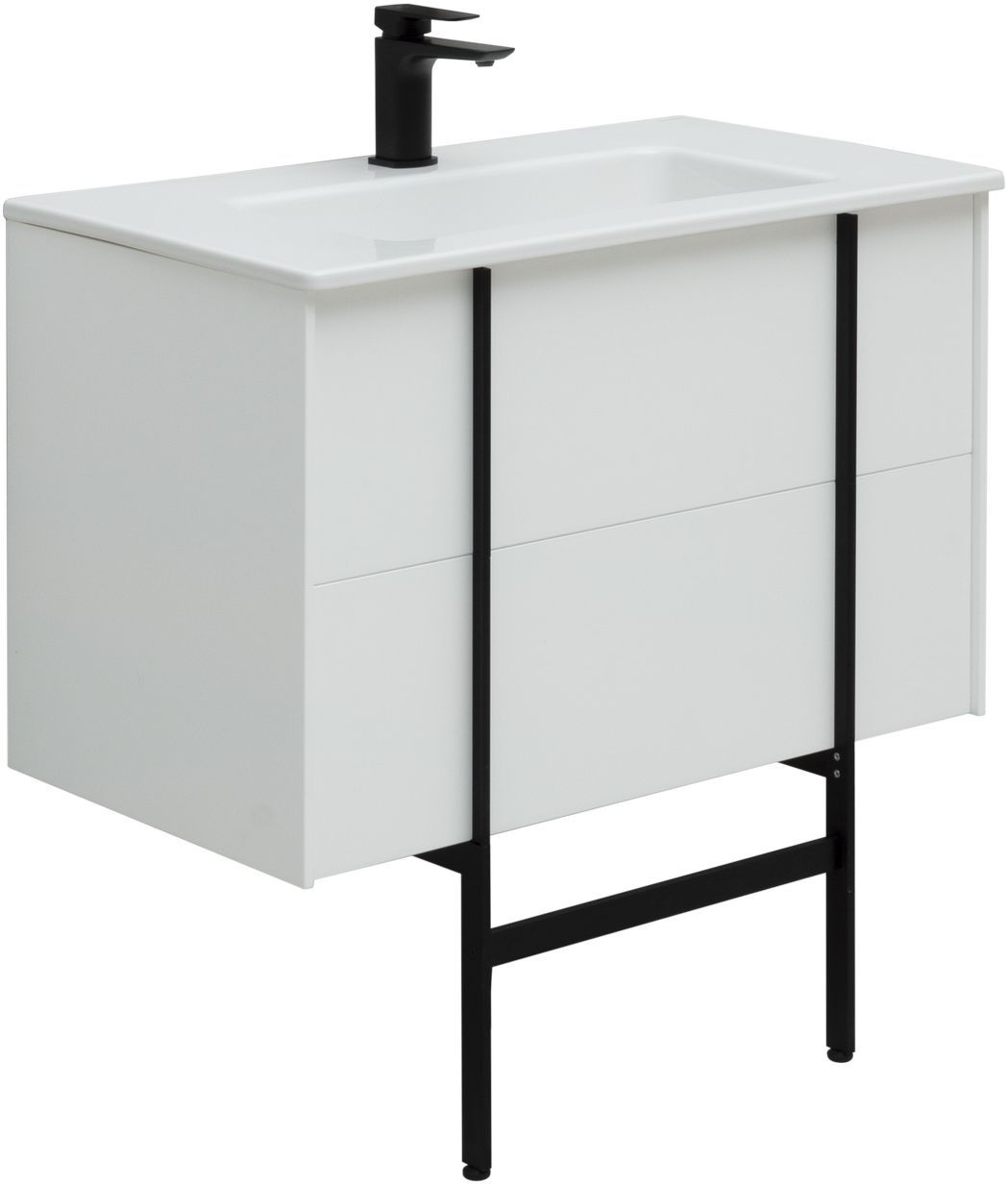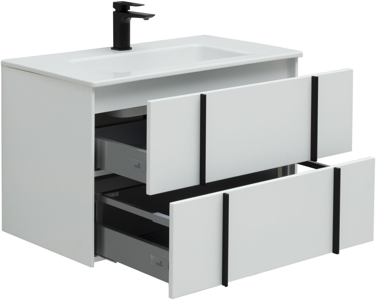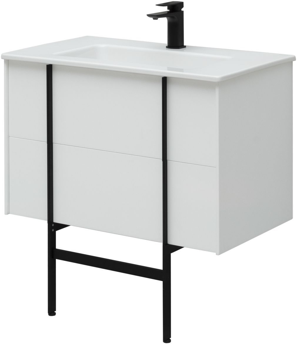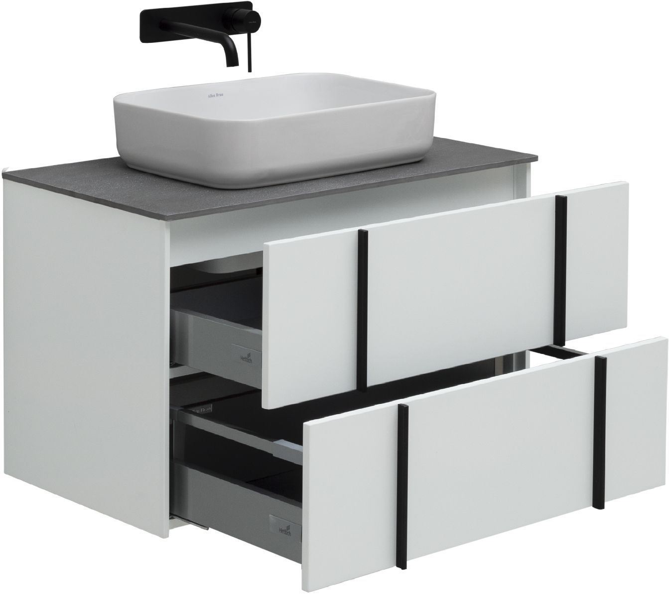 Тумбы оснащены специальной пластиковой рамой, которая надежно защищает вырез под сифон, служит органайзером и позволяет закрепить дополнительный набор контейнеров для хранения.