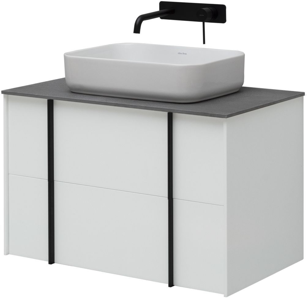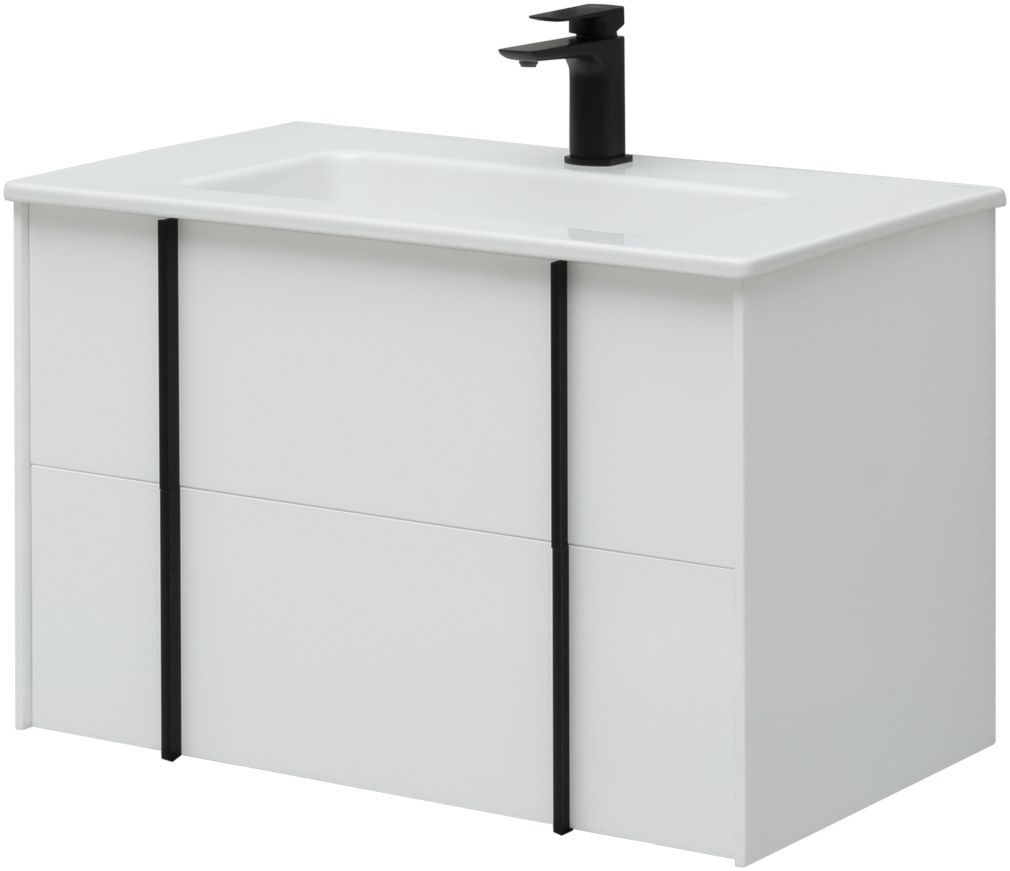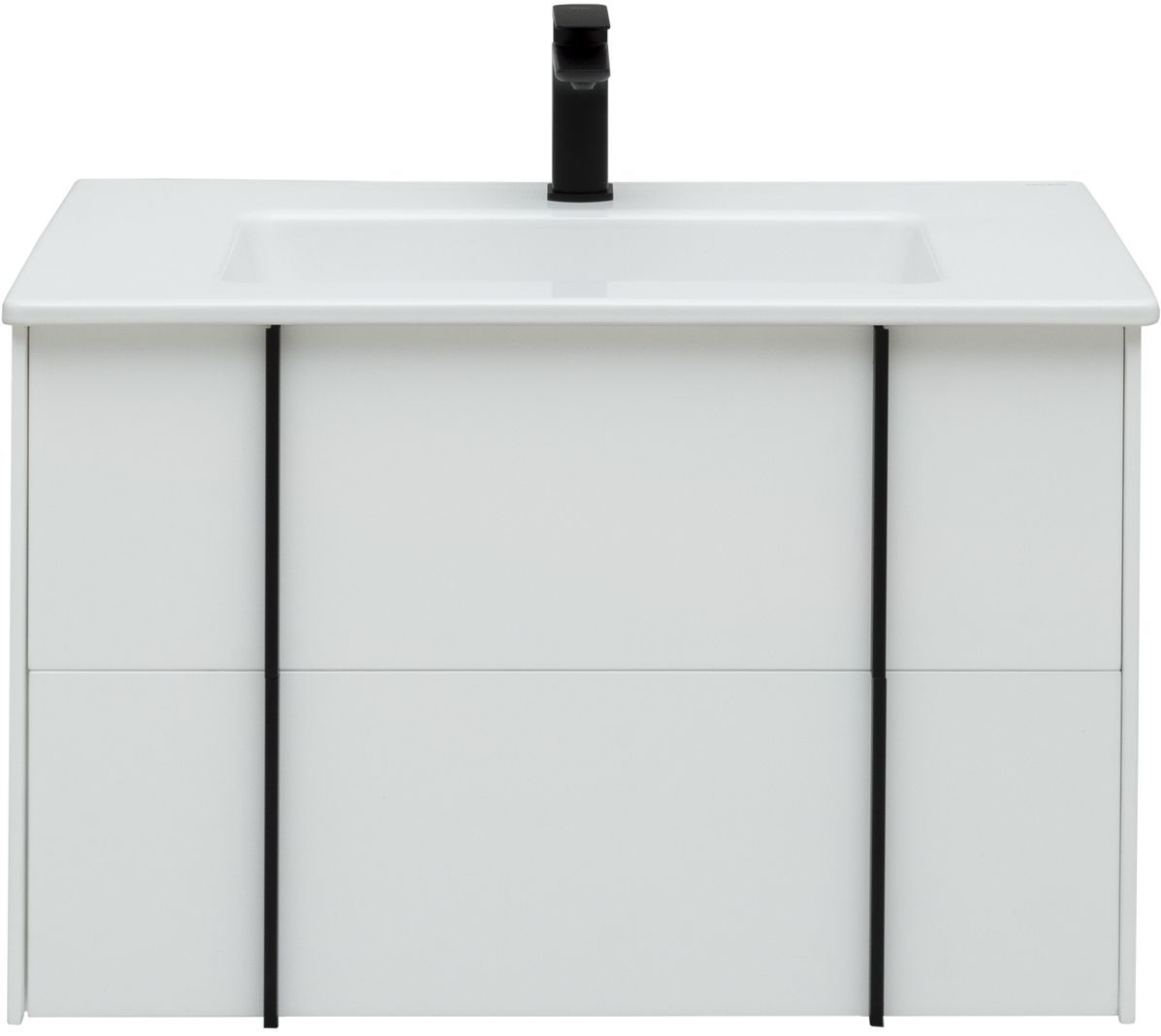 Изюминкой коллекции являются стильные и оригинальные металлические ручки, которые образуют единую линию с ножками тумбы и пенала. Ручки, опоры и зеркала коллекции REALITY выполнены из металла в цветах: черный браш или латунь браш.