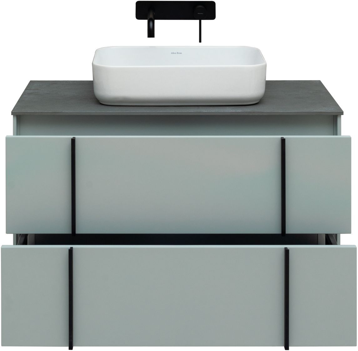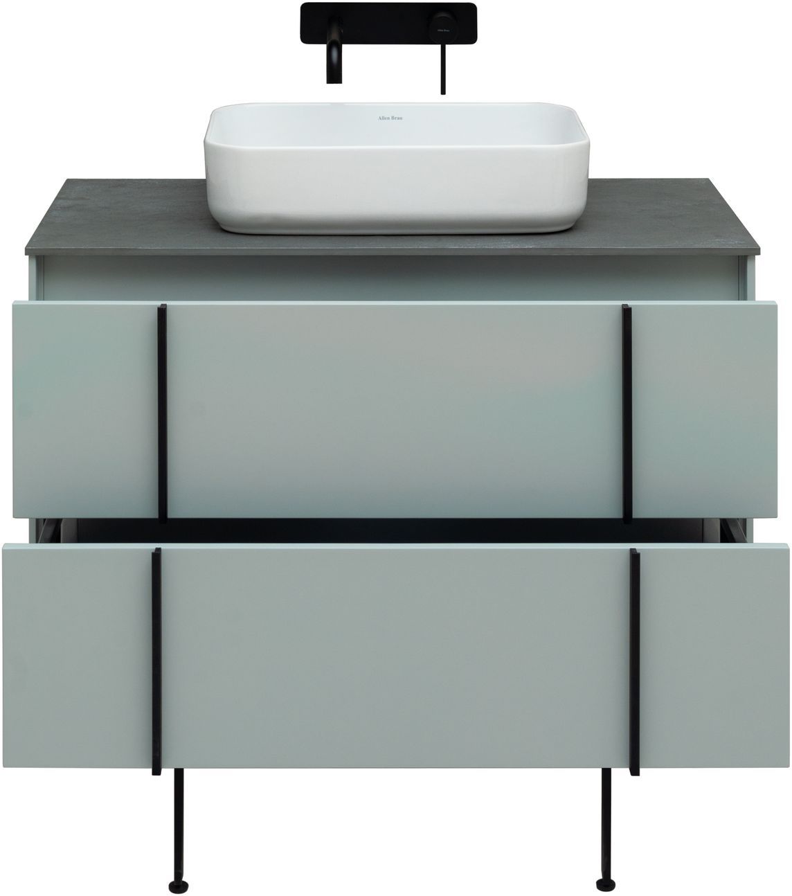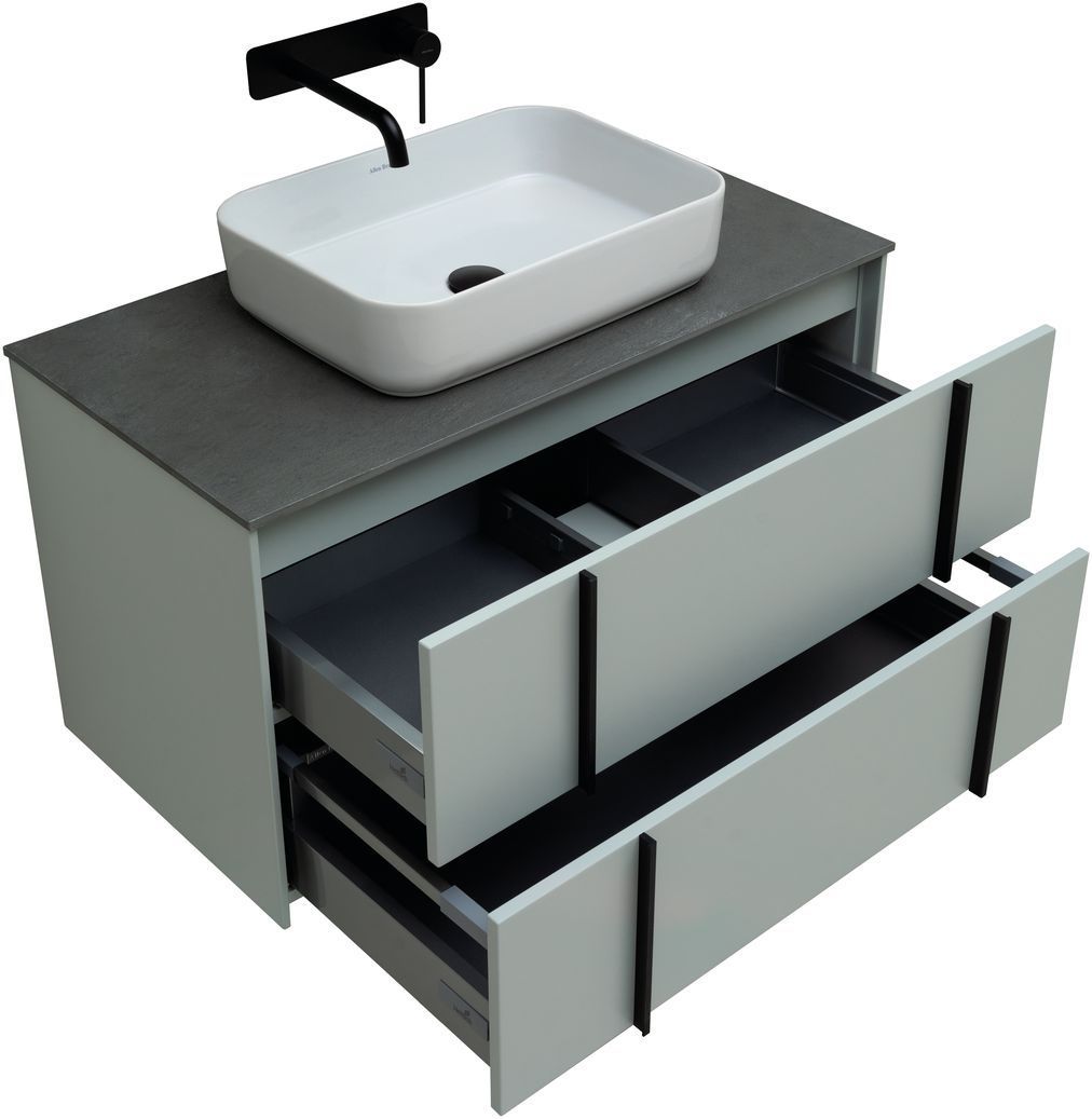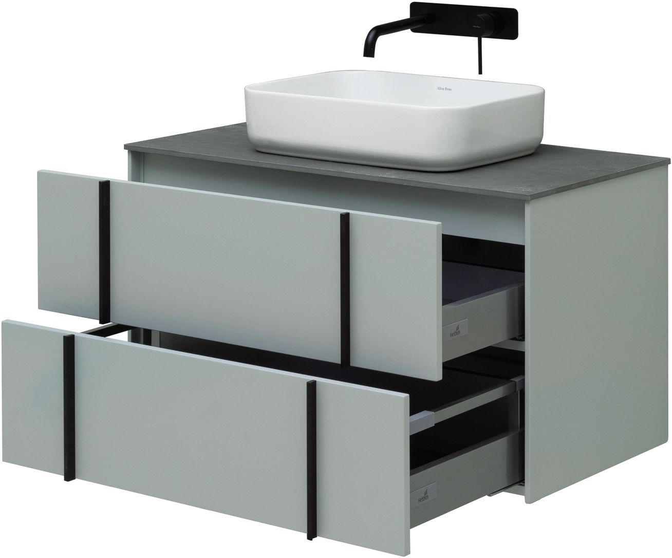Выдвижные ящики с металлическими боковыми стенками в цвете серый металлик.