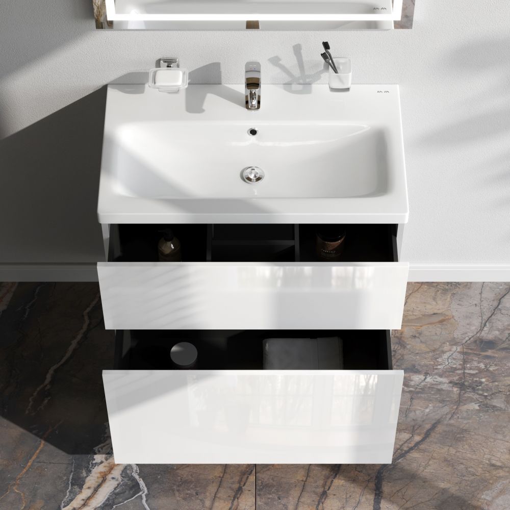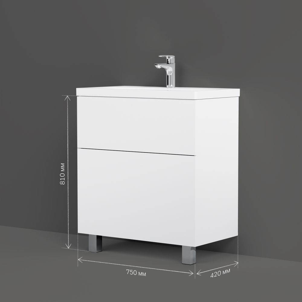 Тумба под раковину AM PM Gem 75 с двумя выдвижными ящиками, с двумя ножками. Хотите выделиться при ограниченном бюджете? Трендовый дизайн мебели для ванной комнаты Gem не уступает комплектам по гораздо более высокой цене. Удобный демонтаж без использования инструментов и легкая регулировка ящиков: благодаря надёжному соединению направляющей и ящика при помощи особого фиксатора. Впервые в доступном сегменте: фурнитура push-to-open последнего поколения. Экологически чистые и удивительно долговечные полиакриловые эмали – специальная технология покраски в 7 слоев превосходит технологию нанесения автоэмали у ведущих немецких марок и обеспечивает насыщенный цвет в течение всего срока службы (от 10 лет).