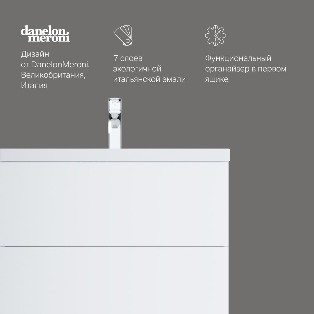 Хотите выделиться при ограниченном бюджете? Трендовый дизайн мебели для ванной комнаты Gem не уступает комплектам по гораздо более высокой цене.