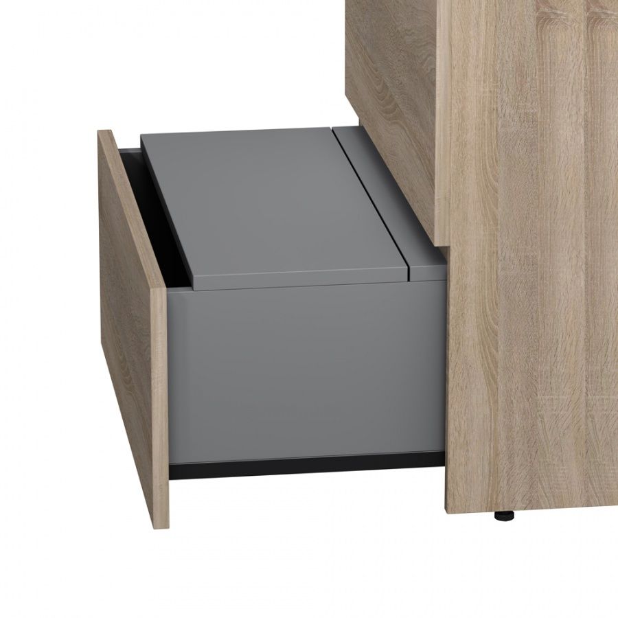 Уникальный нижний ящик базы может быть использован как: выдвижная подставка для детей для удобного мытья рук (выдерживает нагрузку до 60 кг) дополнительная ниша для хранения (экономия пространства ванной комнаты). Ящики с антискользящим покрытием цвета антрацит – европейский стандарт.