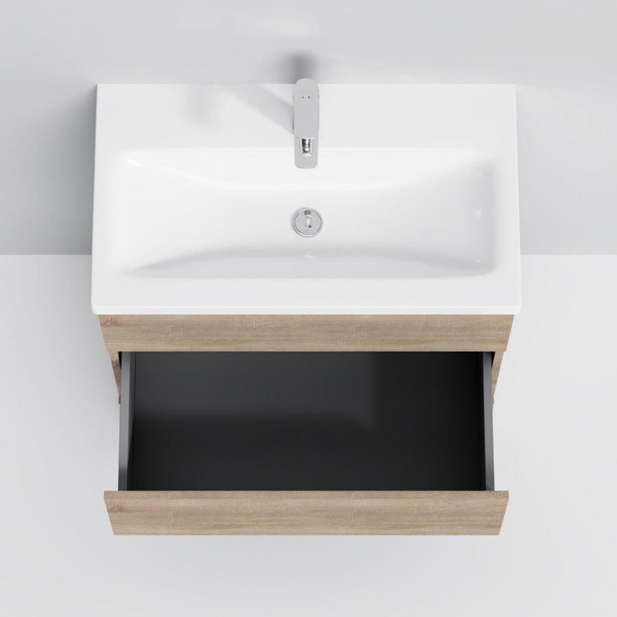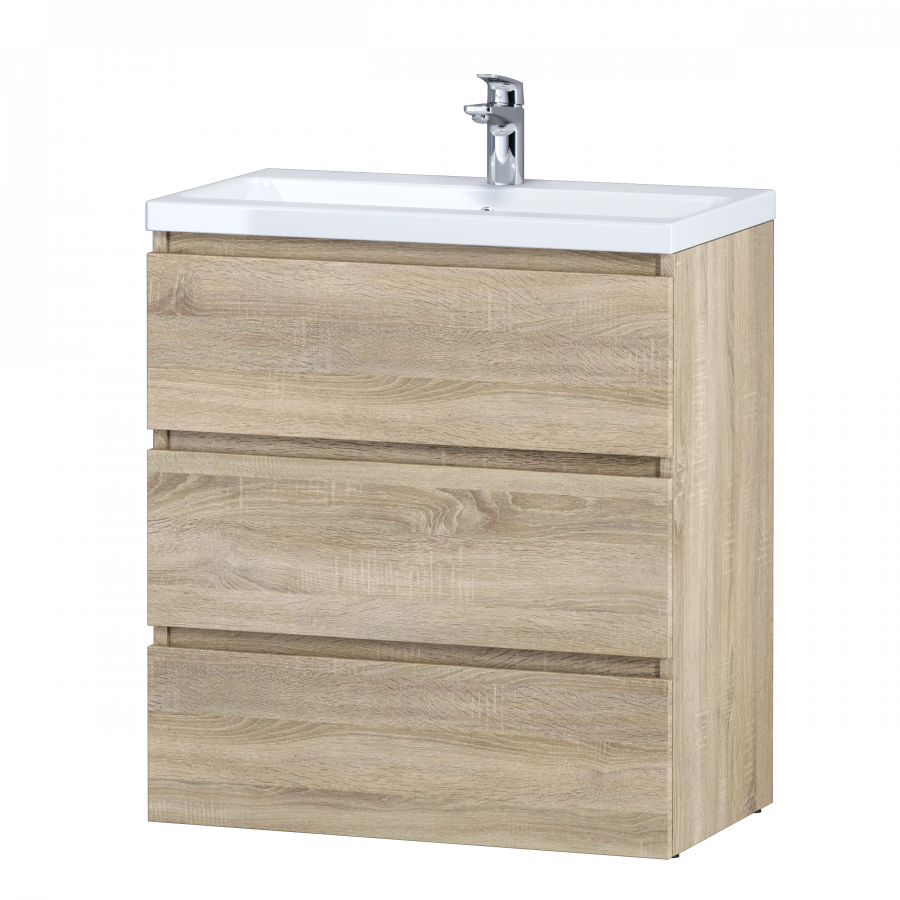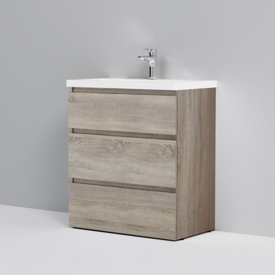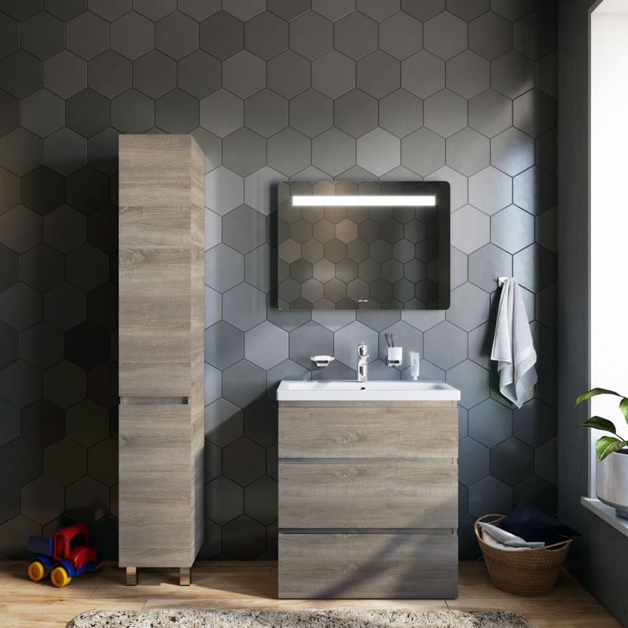 Тумба под раковину AM PM Gem S 75 с выдвижными ящиками, с двумя ножками. Современный европейский дизайн от DanelonMeroni (Великобритания/Италия). Уникальный нижний ящик базы может быть использован как: выдвижная подставка для детей, для удобного мытья рук (выдерживает нагрузку до 60 кг), дополнительная ниша для хранения (экономия пространства ванной комнаты). Ящики с антискользящим покрытием цвета антрацит – европейский стандарт. Повышенная влагостойкость мебели: окрашенные в 7 слоев поверхности мебели в цвете белый глянец , влагостойкая плита мебели в цвете светлый дуб.
