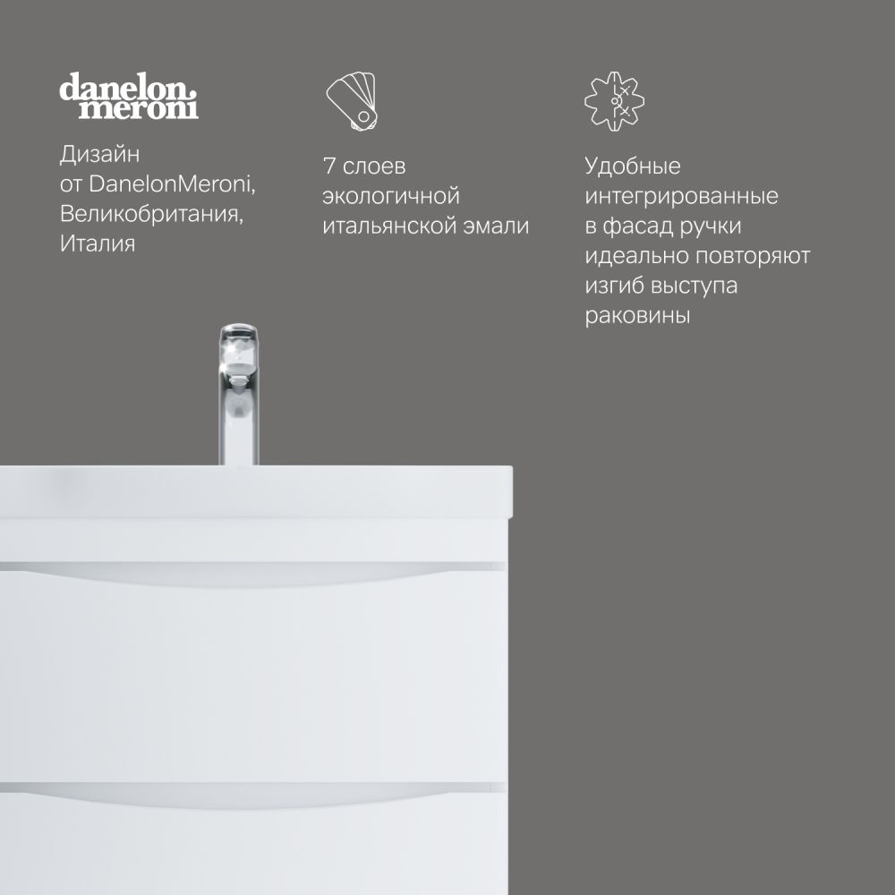 Утонченность в деталях: удобные интегрированные в фасад ручки идеально повторяют изгиб выступа раковины