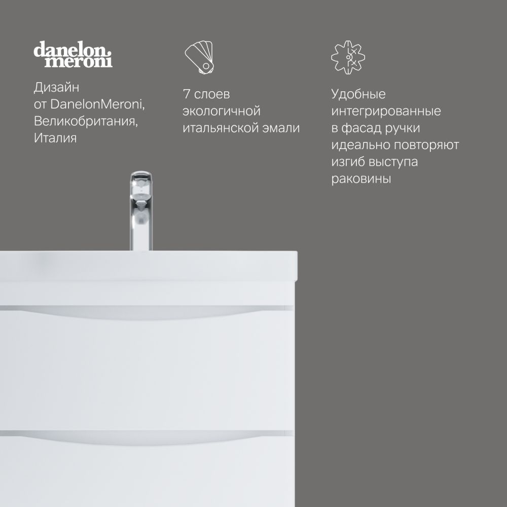Утонченность в деталях: удобные интегрированные в фасад ручки идеально повторяют изгиб выступа раковины