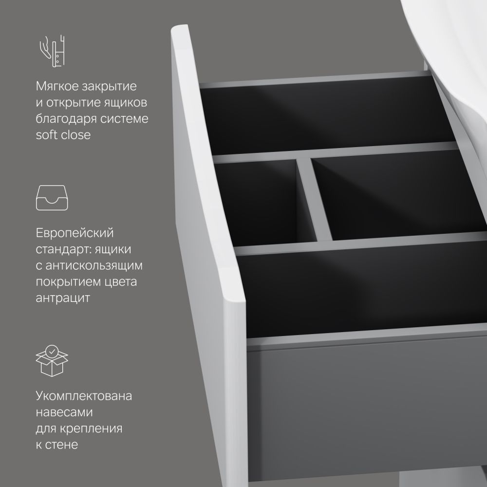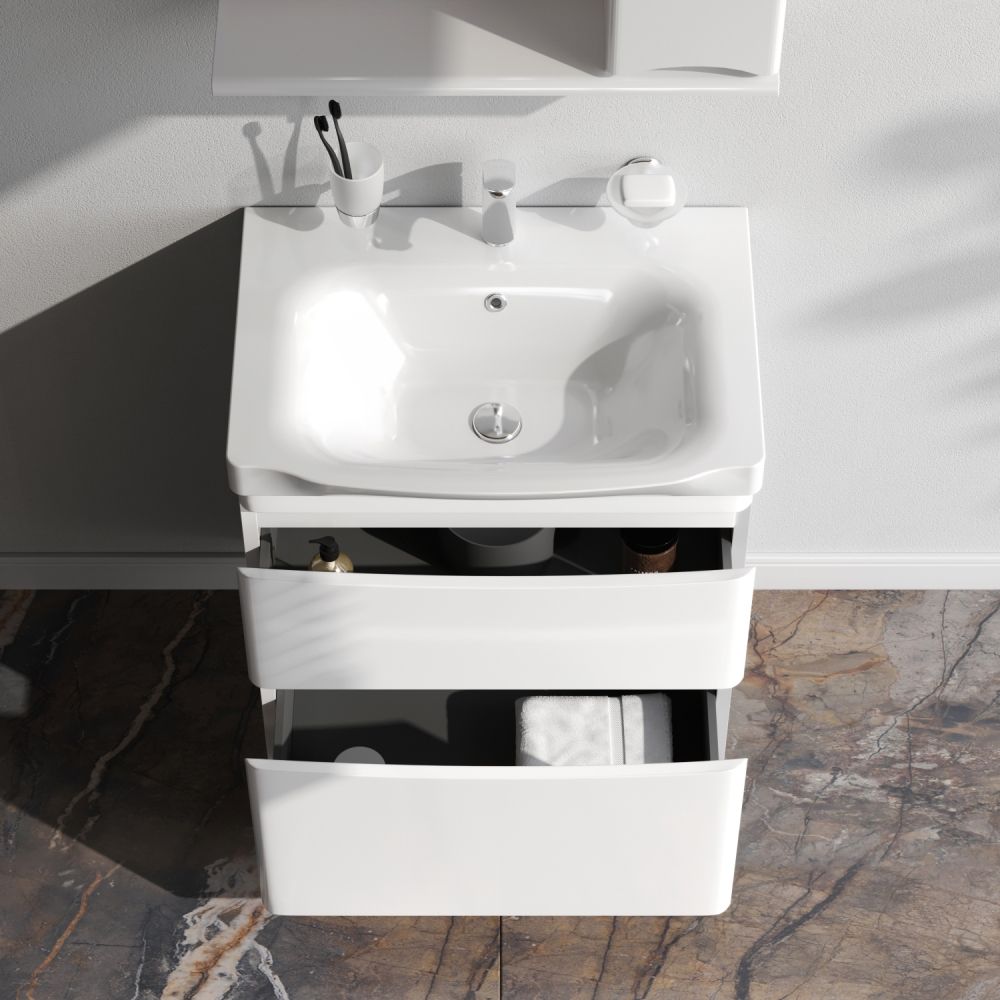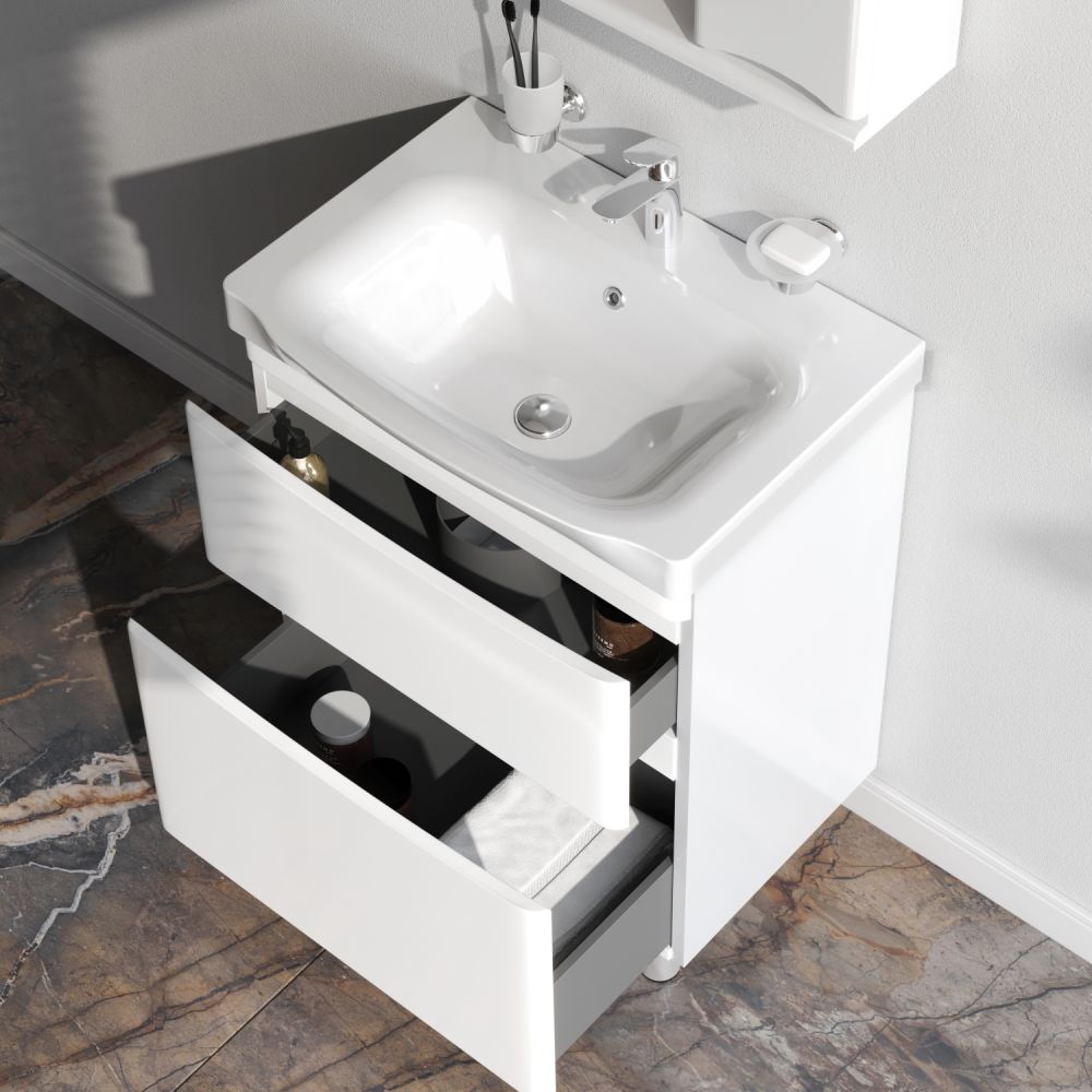 Комбинированная тумба под раковину AM PM Like 65 M80FSX0652WG с двумя выдвижными ящиками. Впервые ультрамодная дизайнерская мебель в стиле Dynamic Organic стала представлена в доступном сегменте; Уникальная глубокая и удобная раковина со стилизованной губой - защищает от разбрызгивания воды; Утонченность в деталях: удобные интегрированные в фасад ручки идеально повторяют изгиб выступа раковины; Самое мягкое открытие и закрытие ящиков в классе: направляющие скрытого монтажа с системой мягкого закрывания soft close; Экологически чистые и удивительно долговечные полиакриловые эмали – специальная технология покраски в 7 слоев превосходит технологию нанесения автоэмали у ведущих немецких марок и обеспечивает насыщенный цвет в течение всего срока службы (от 10 лет).