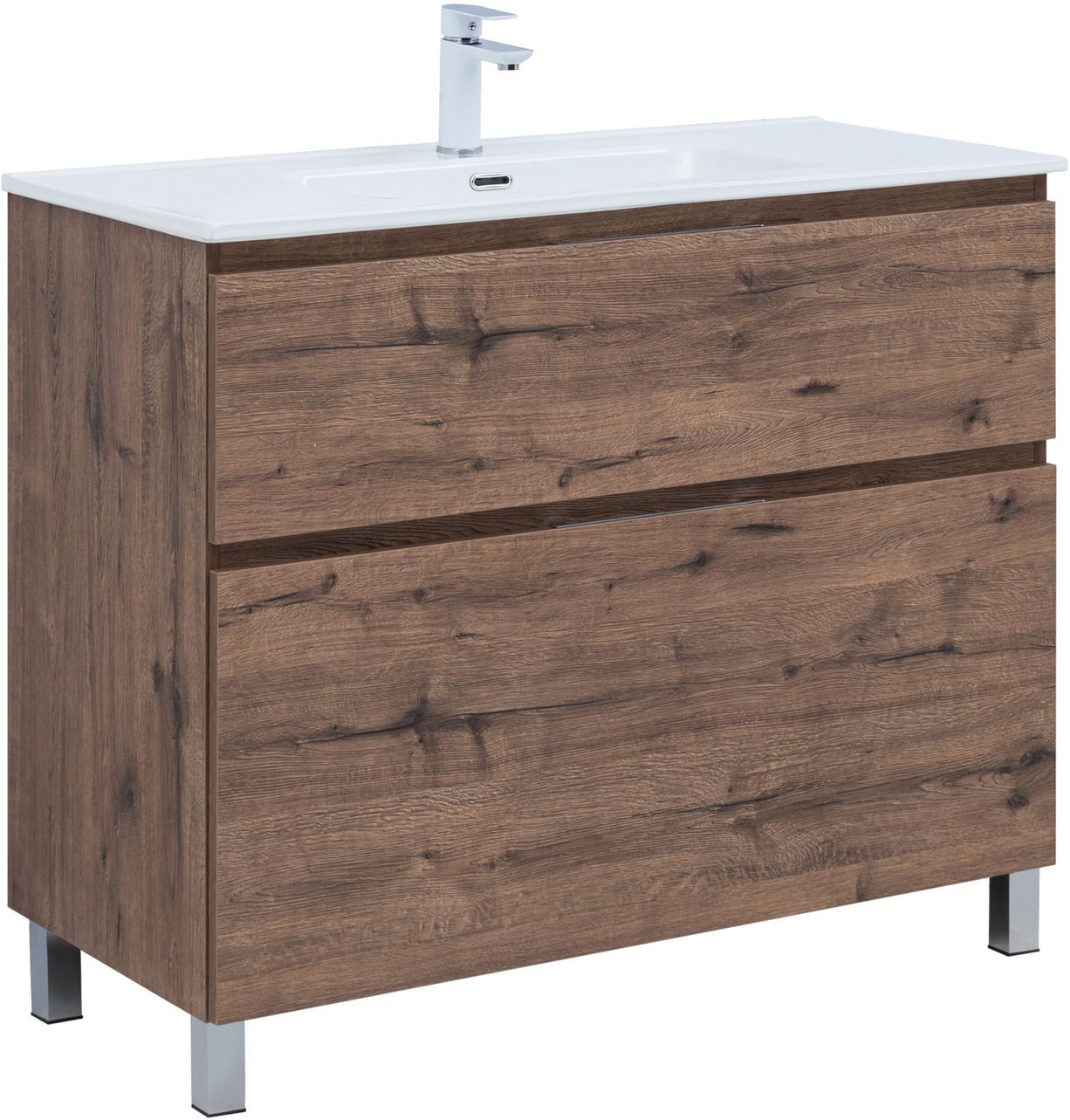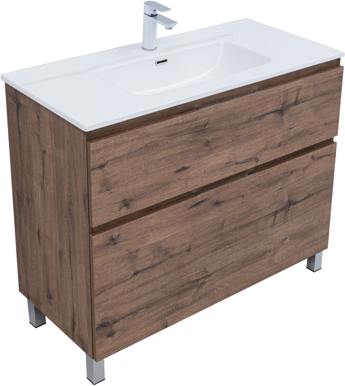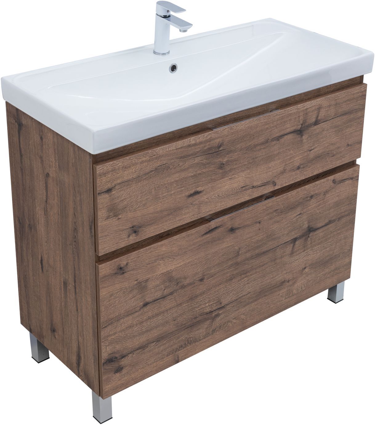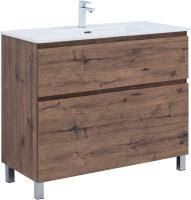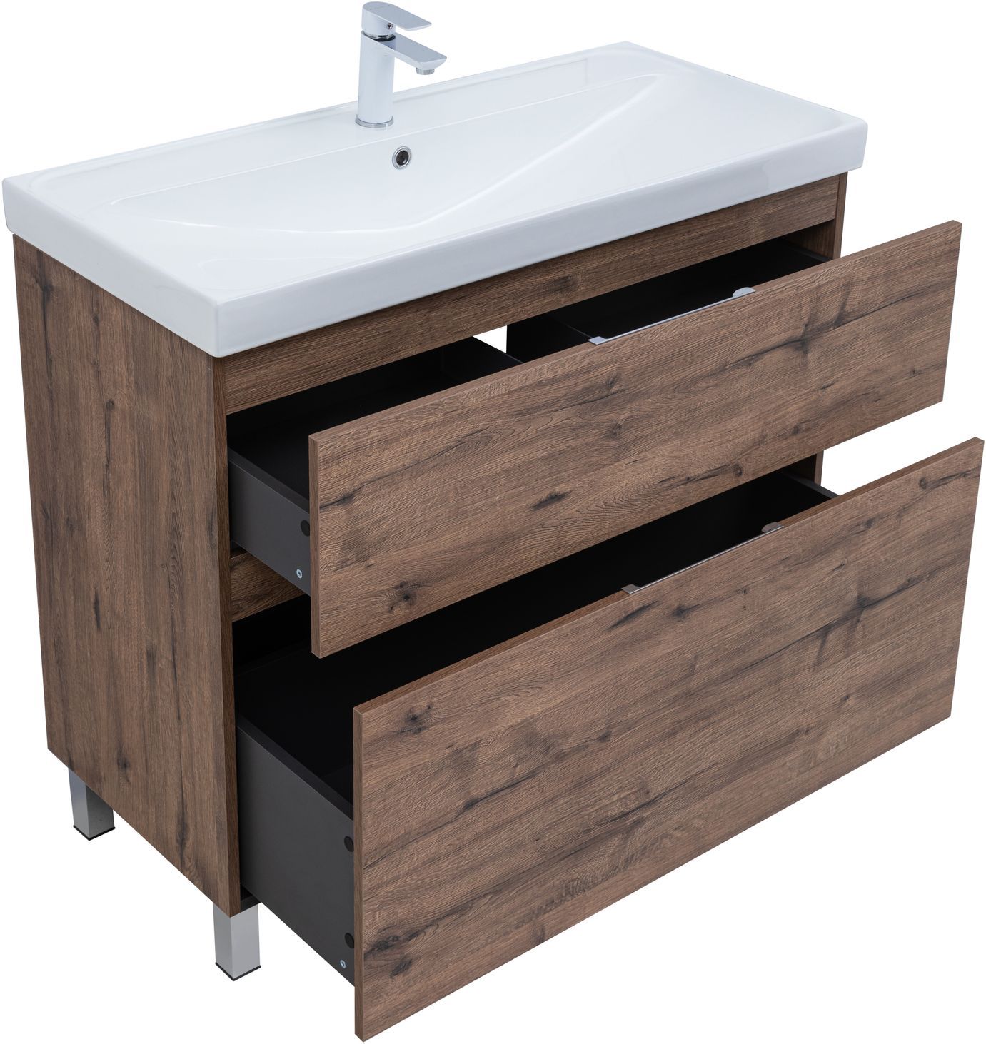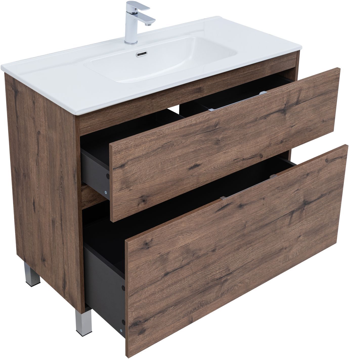 Тумба под раковину Aquanet Алвита New 100 напольная, дуб веллингтон табак отличается не только элегантным внешним видом, но и продуманной конструкцией. Внутренние детали изготовлены из влагостойкой ЛДСП в цвете антрацит.