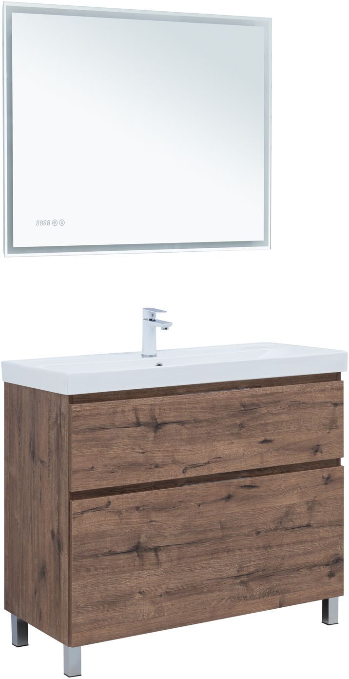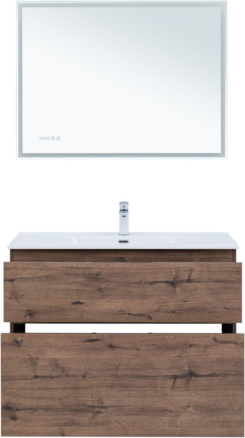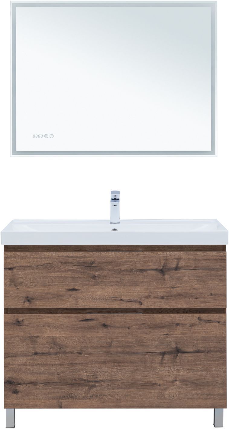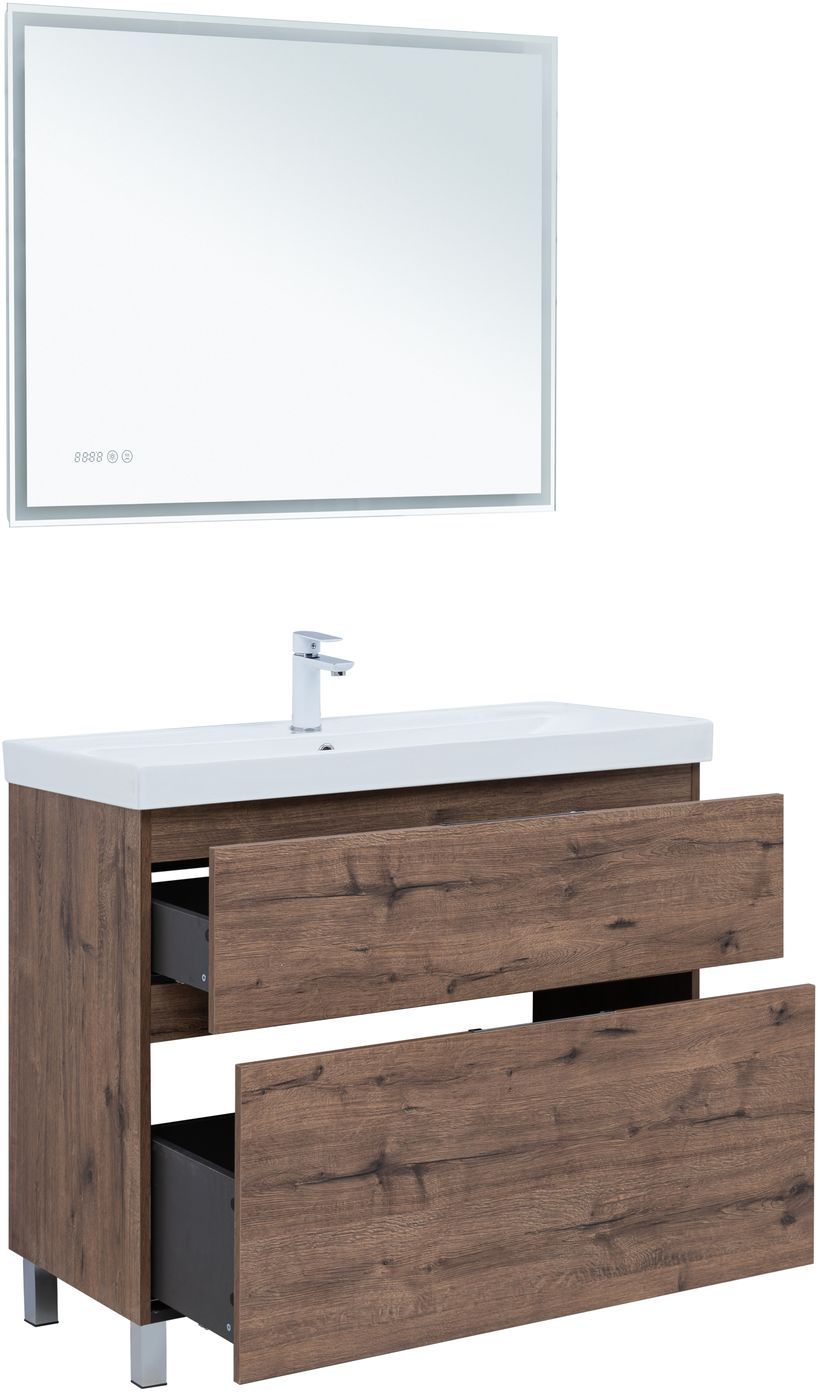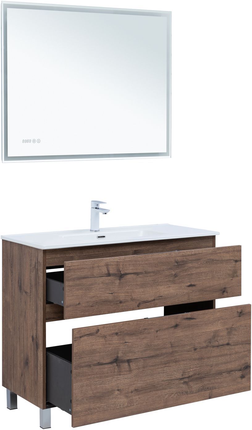 Тумба под раковину Aquanet Алвита New 100 напольная, дуб веллингтон табак отличается не только элегантным внешним видом, но и продуманной конструкцией. Внутренние детали изготовлены из влагостойкой ЛДСП в цвете антрацит.