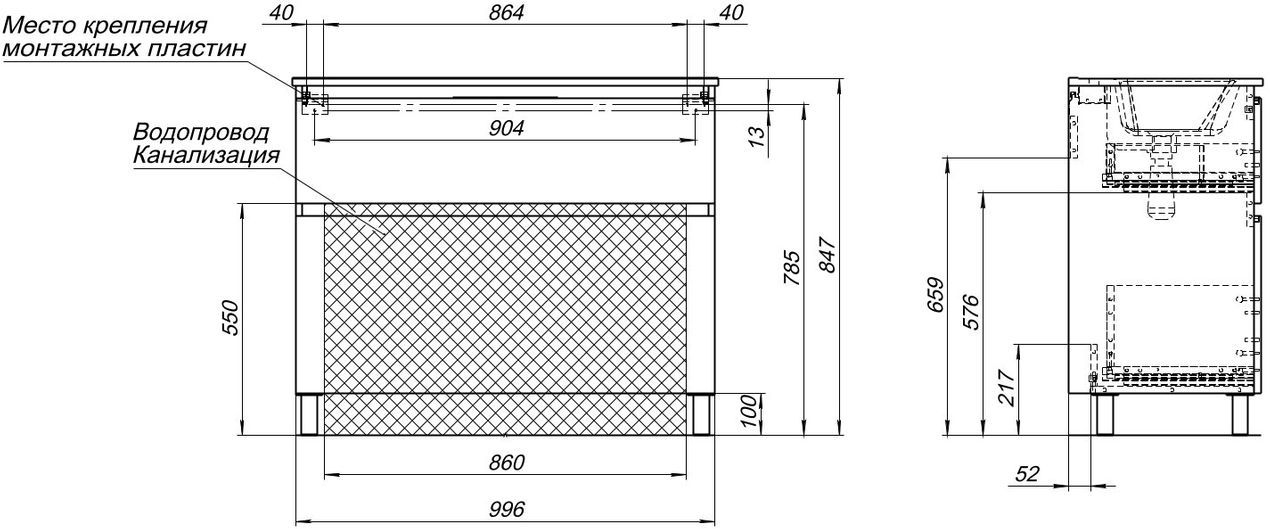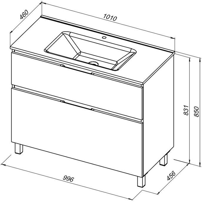 В комплекте предусмотрены металлические опоры (4 шт, высота 100 мм), а также пластиковое ограждение сифона в сером цвете. Прочное дно нижнего ящика, изготовленное из влагостойкой ЛДСП толщиной 16 мм, обеспечивает дополнительную устойчивость и долговечность.
