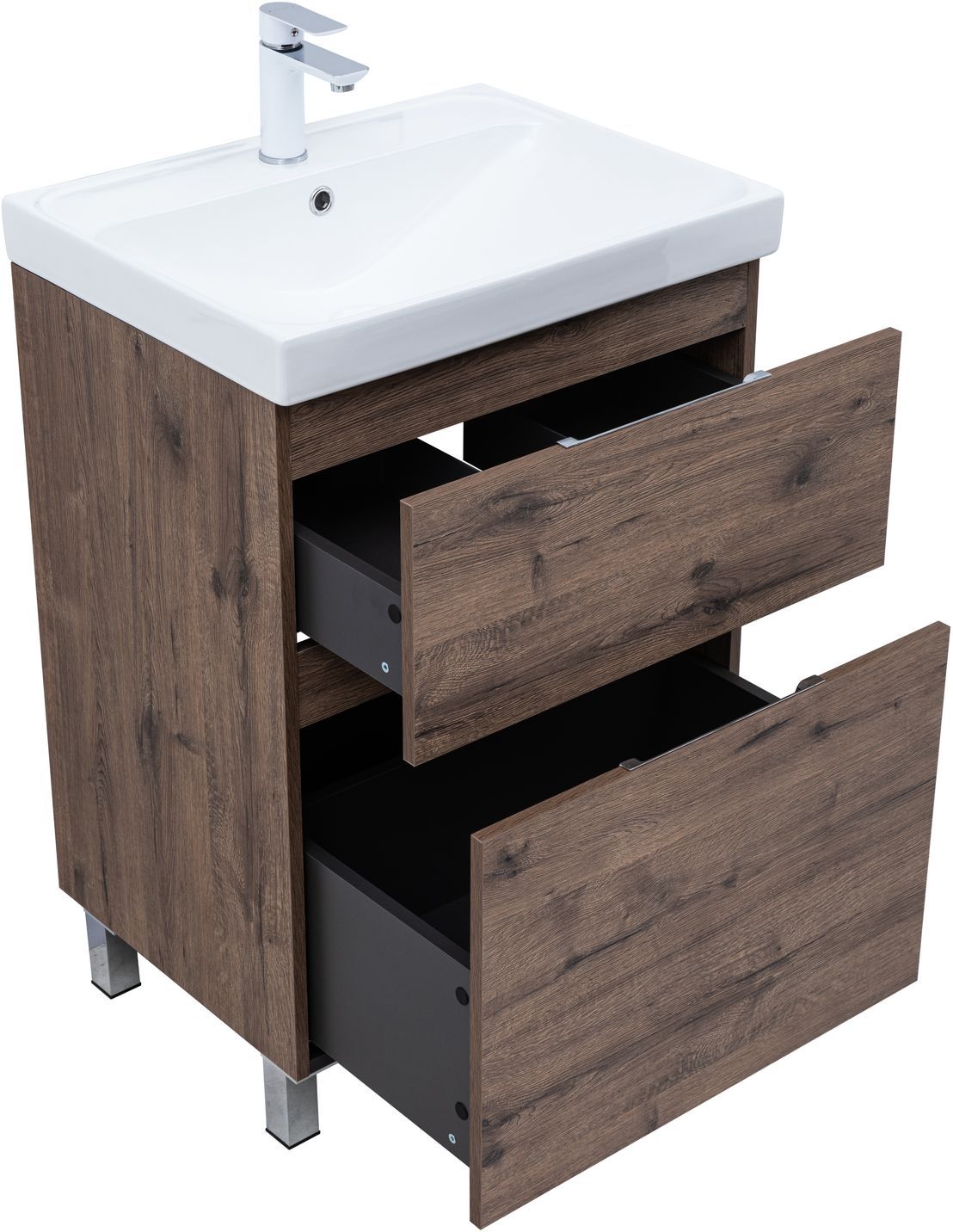 Тумба под раковину Aquanet Алвита New 60 напольная, дуб веллингтон табак отличается не только элегантным внешним видом, но и продуманной конструкцией. Внутренние детали изготовлены из влагостойкой ЛДСП в цвете антрацит.