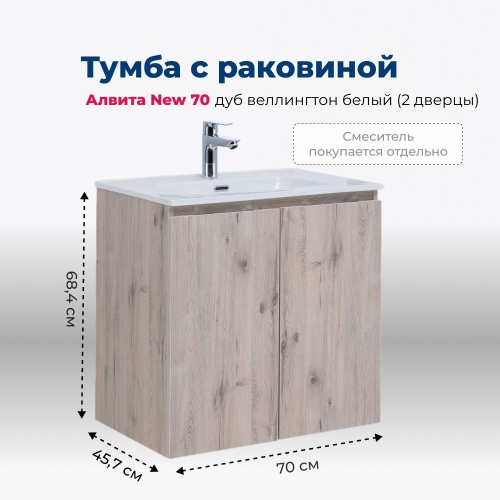 Тумба под раковину в ванную комнату бренда Aquanet выполнена в стиле модерн и входит в нашу коллекцию мебели Алвита New. Представленная коллекция мебели для ванных комнат осчастливила сотни покупателей, так как они приобрели сочетание дизайна, качества и функциональности. Важный момент при выборе тумбы для умывальника / раковины - это материалы. Они должны быть адаптированы к эксплуатации в условиях повышенной влажности. Влагостойкий ЛДСП - материал, из которого выполнен корпус изделия, фасад - из влагостойкого ЛДСП. При монтаже подвесной тумбы в первую очередь необходимо учесть ширину, которая равна 70 см. Тумба в цвете коричневый (дуб веллингтон белый) освежит Вашу ванну и будет отлично сочетатся с сантехникой. Тумба в ванную также обеспечит вам экономию места, так как в ней предусмотрены полки, куда можно поместить средства личной гигиены.