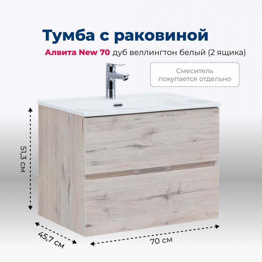 Тумба под раковину в ванную комнату бренда Aquanet выполнена в стиле модерн и входит в нашу коллекцию мебели Алвита New. Представленная коллекция мебели для ванных комнат осчастливила сотни покупателей, так как они приобрели сочетание дизайна, качества и функциональности. Важный момент при выборе тумбы для умывальника / раковины - это материалы. Они должны быть адаптированы к эксплуатации в условиях повышенной влажности. Влагостойкий ЛДСП - материал, из которого выполнен корпус изделия, фасад - из влагостойкого ЛДСП. При монтаже подвесной тумбы в первую очередь необходимо учесть ширину, которая равна 70 см. Тумба в цвете коричневый (дуб веллингтон белый) освежит Вашу ванну и будет отлично сочетатся с сантехникой. Тумба в ванную также обеспечит вам экономию места, так как в ней предусмотрены вместительные ящики, оснащенные механизмом доводчика.