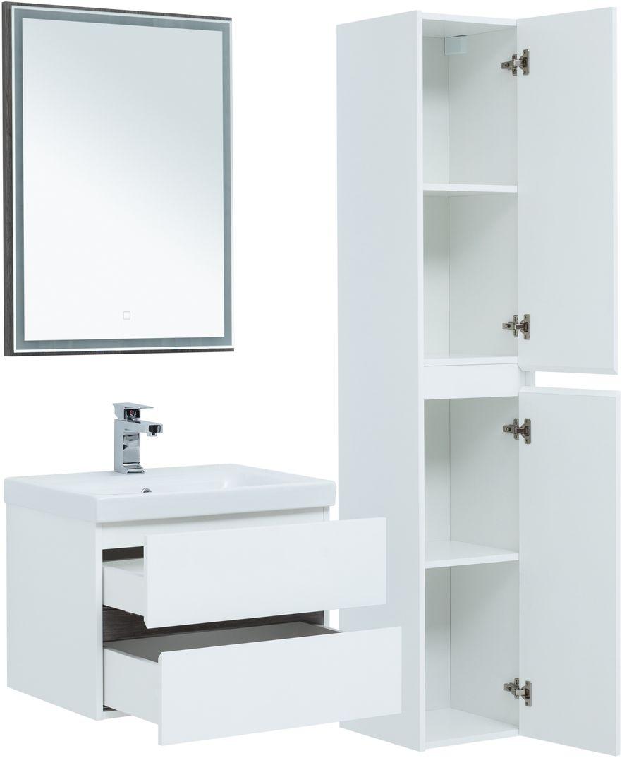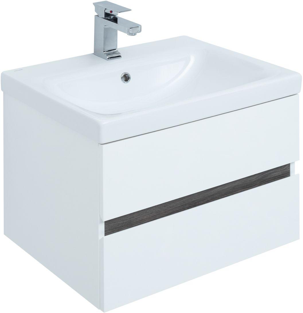 Тумба с раковиной Aquanet Беркли 60 белый/дуб рошелье имеет изюминку - контрастную декоративную полосу между ящиками в цвете «дуб рошелье». Корпус и фасады тумбы выполнены из влагостойкого ЛДСП и покрыты глянцевой белой эмалью. В конструкции тумбы использованы интегрированные ручки без острых краев и внутренних углов.