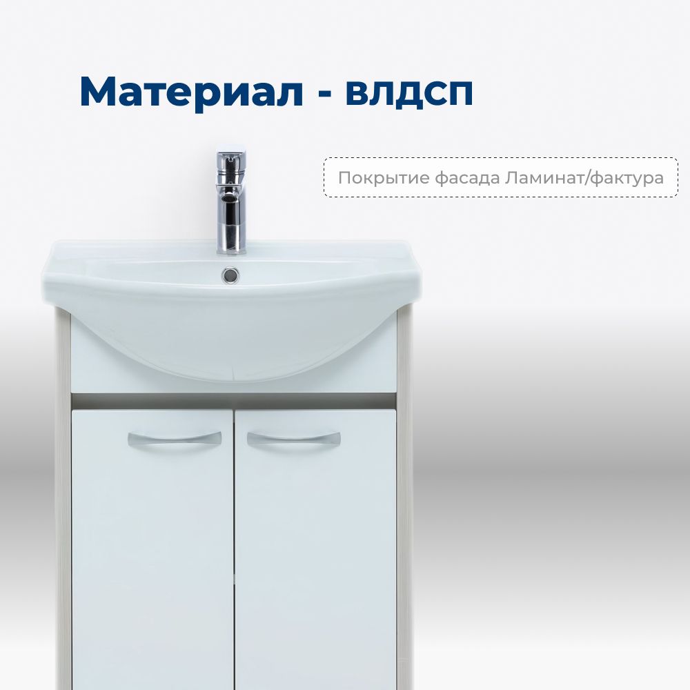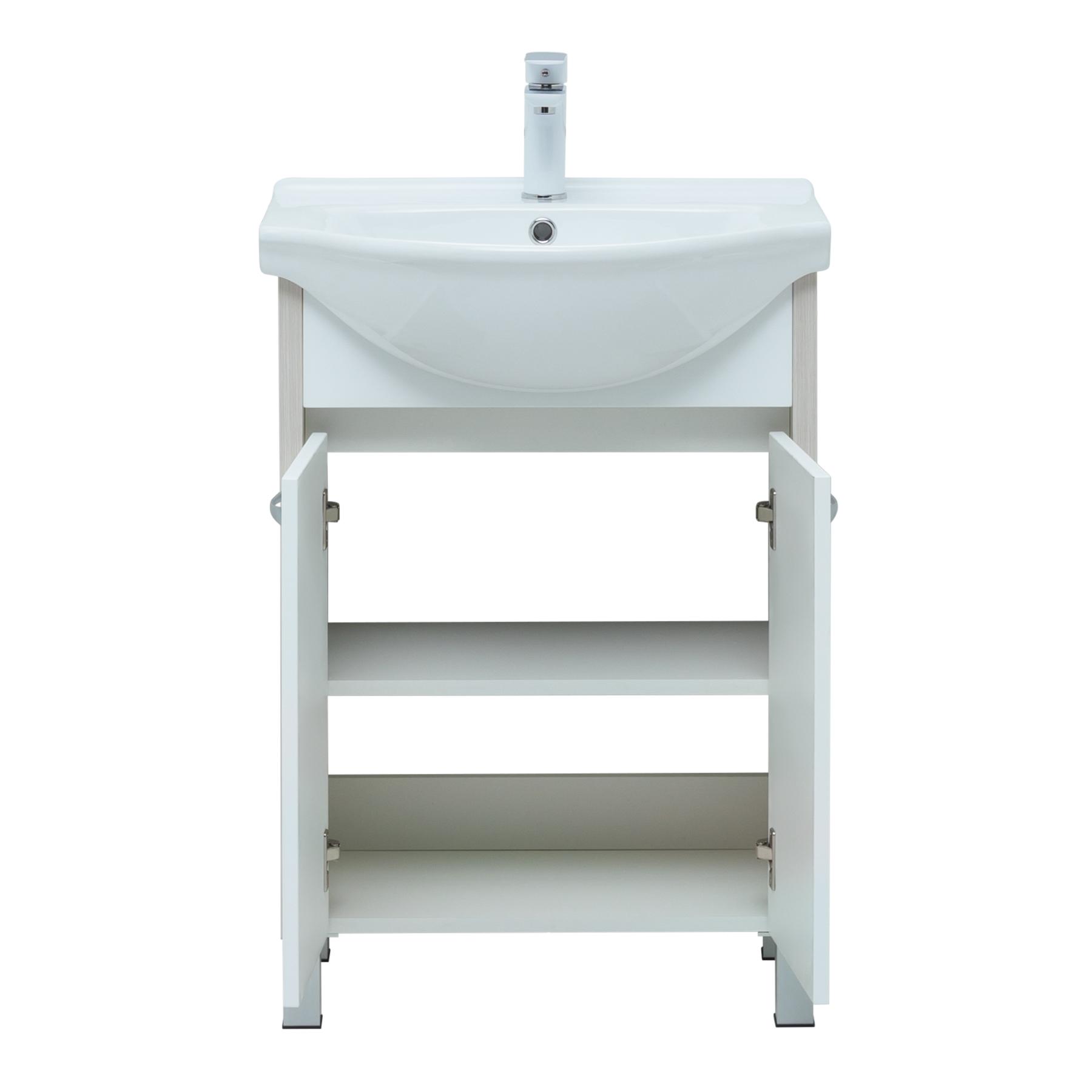 Тумба с раковиной Aquanet «Донна» 60 оснащена двумя белыми распашными дверцами, за которыми располагается один отсек с полкой. Удобство открывания обеспечивают хромированные ручки. Корпус сделан из ЛДСП, окрашенной в цвет «белый дуб». Модель устанавливают на четыре ножки.