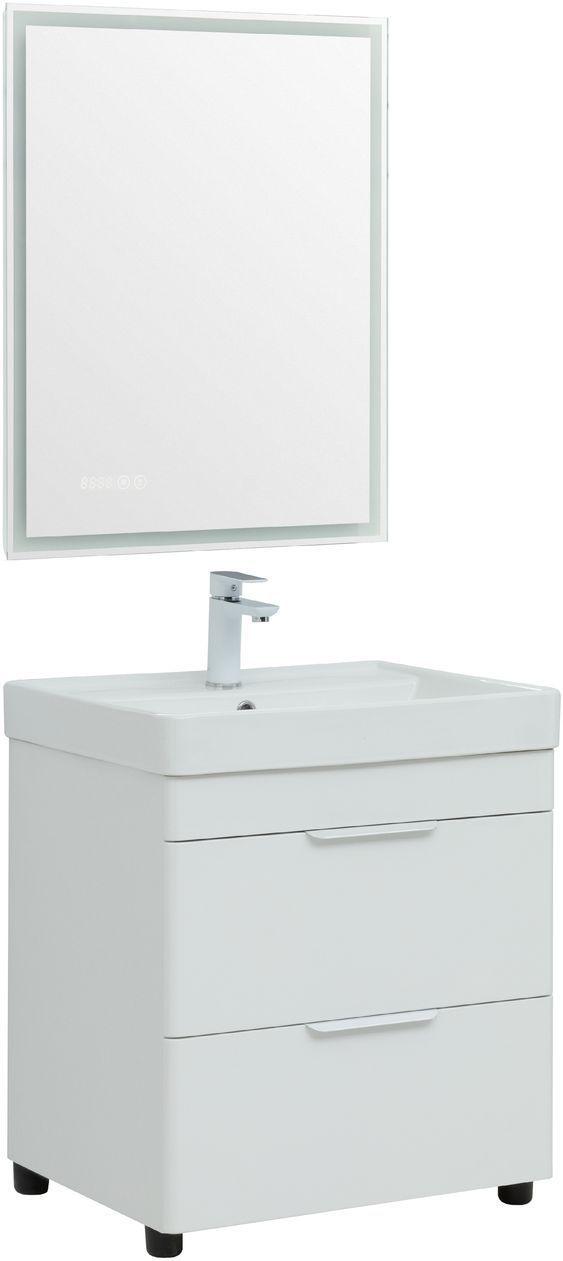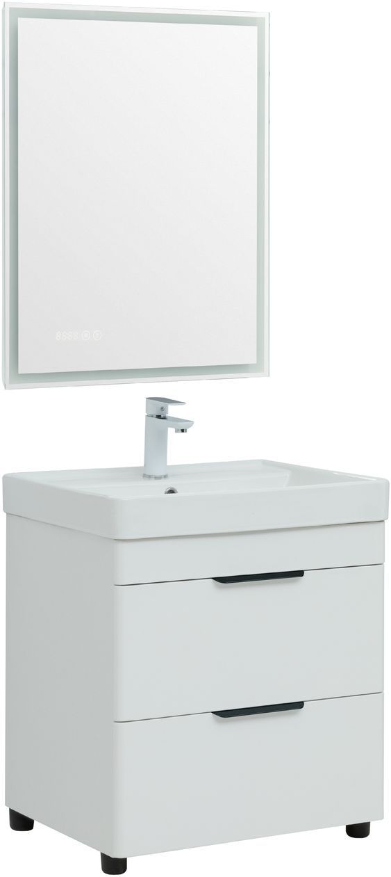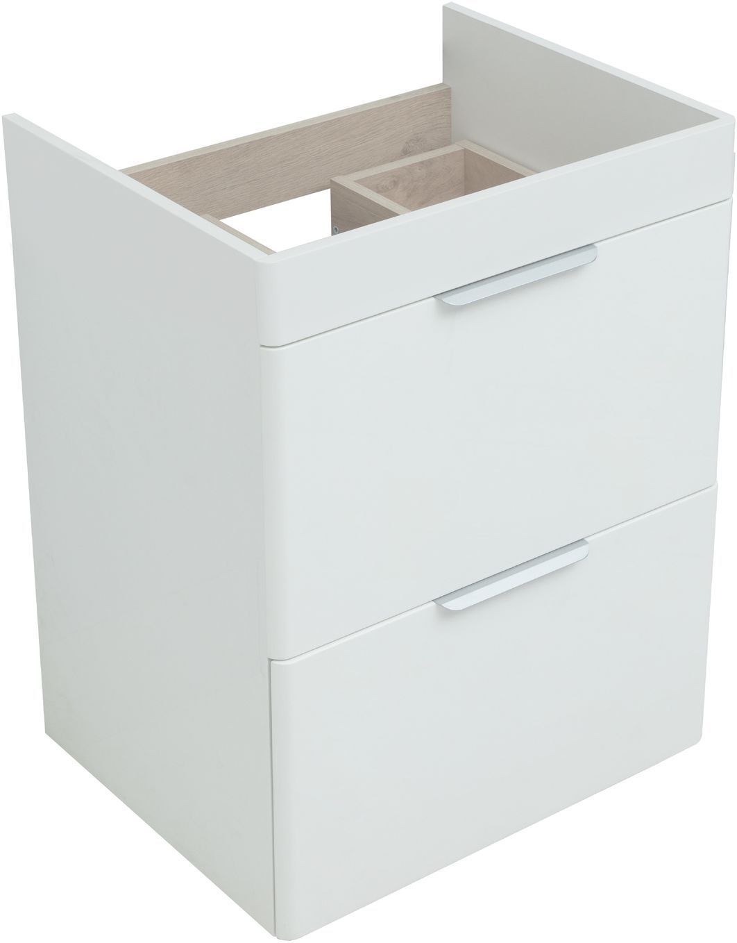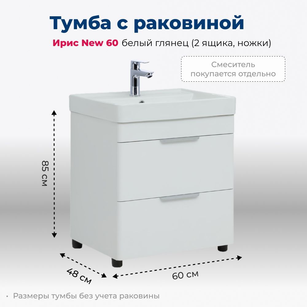 Тумба с раковиной Aquanet Ирис new 60 в белом глянцевом исполнении — пример эргономичной организации пространства под умывальником. Тумба напольная, с двумя выдвижными шкафчиками, оснащенными механизмом плавного доведения. Благодаря компактным размерам 600*850*480 мм помещается как в малые ванные комнаты, так и в более просторные. Изготовлена мебель из влагостойкого ЛДСП, а фасад — из МДФ. Материалы прочные, полностью защищены от воздействия влаги в виде появления споровых образований. В комплекте приобретается раковина от Aquanet модели «Ирис», которая великолепно дополнит тумбу. Организация положения ящиков под раковиной выполнена таким образом, чтобы хранению бытовой химии никак не мешали коммуникации водоотведения. По дизайну тумба подойдет ко всем современным стилям в интерьерах, а также хорошо будет смотреться в любой цветовой гамме.