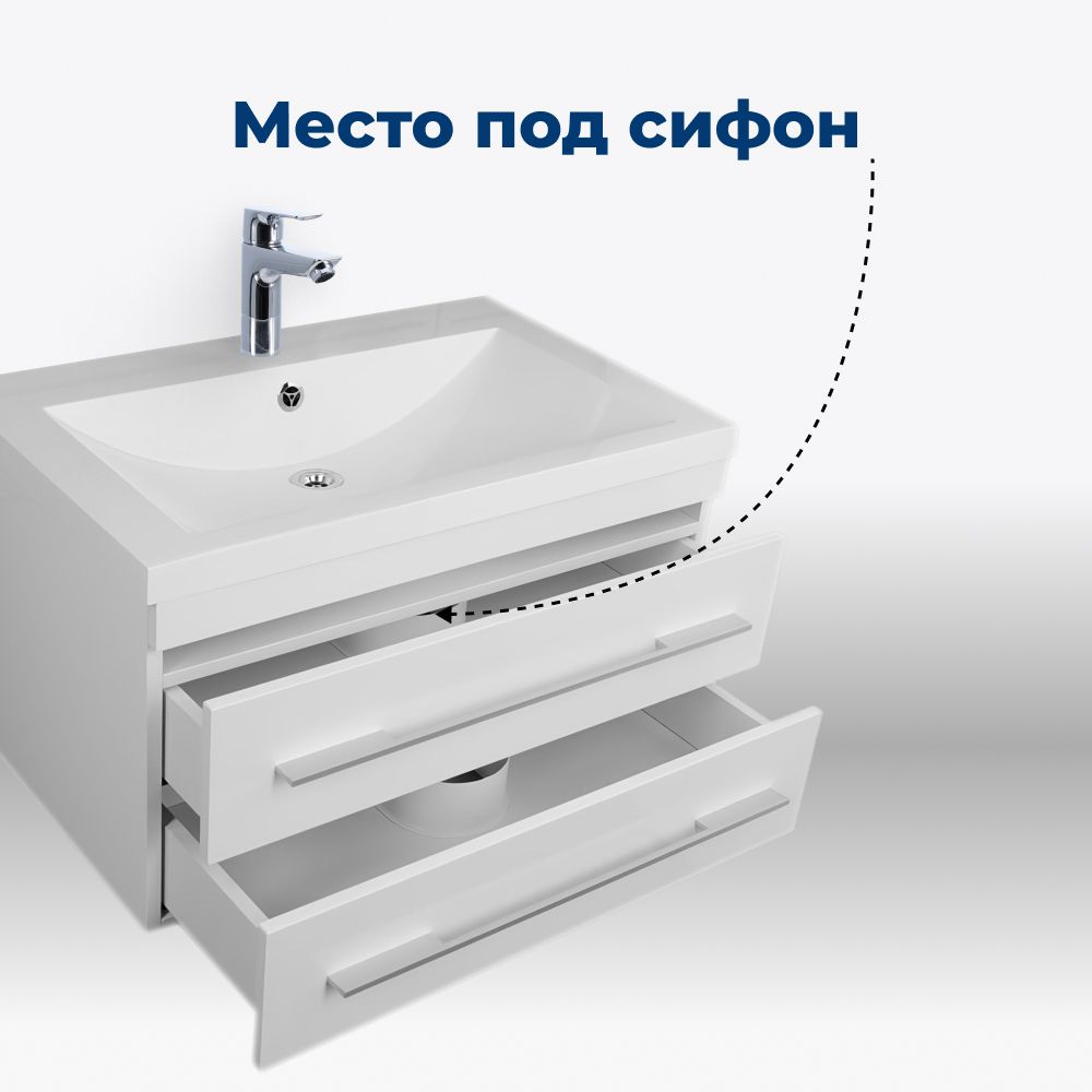 Навесная тумба Нота облегчает уборку благодаря отсутствию ножек и обеспечивает место для хранения бытовых средств в двух глубоких ящиках. Тумба представлена как часть набора мебели для ванной комнаты Акванет Нота 75, но может быть приобретена и отдельно. Дополните набор подкатной тумбой с выдвижным ящиком, которая одновременно может служить и зоной для хранения, и удобной подставкой. Подкатная тумба Нота в стоимость комплекта не входит и может быть приобретена отдельно.