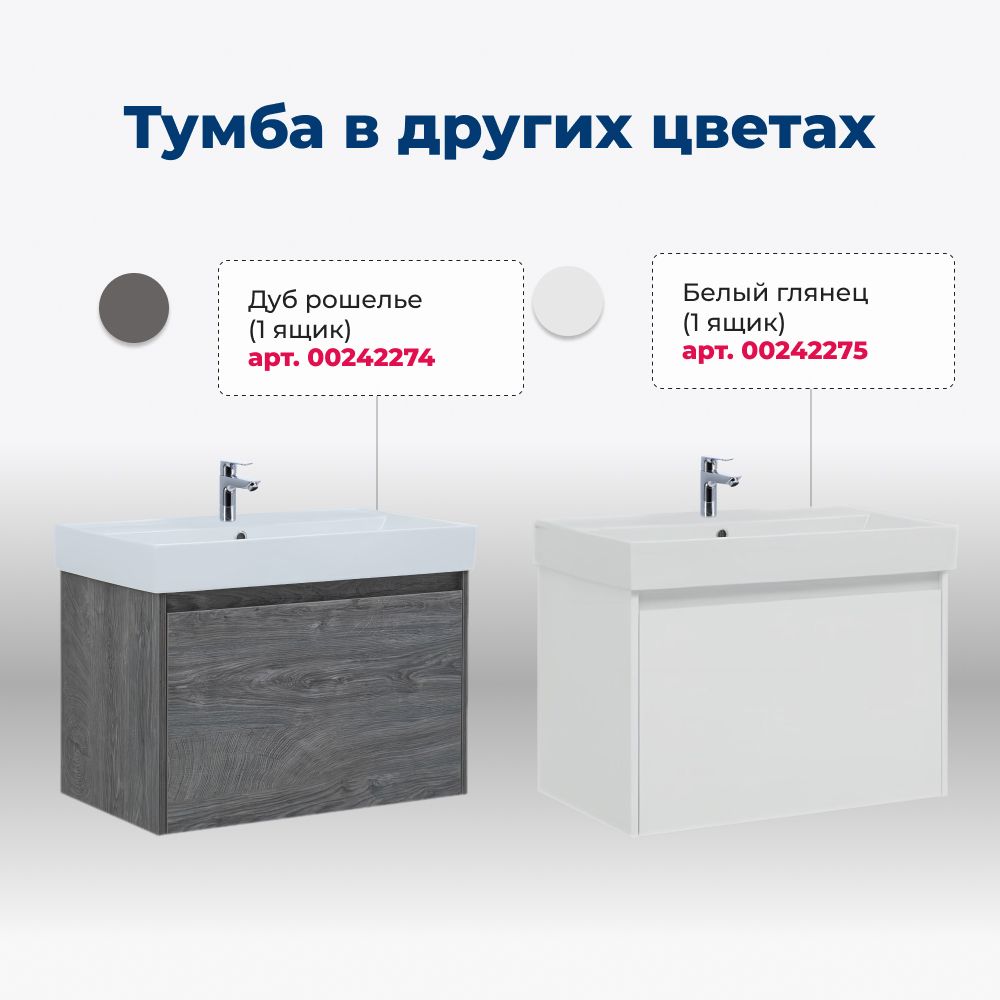 Тумба с раковиной Aquanet Nova Lite 75 из влагостойкой ламинированной древесно-стружечной плиты в изысканном цвете «дуб рустикальный» имеет достойный вид. Фактура натурального дерева выглядит благородно, а подвесной монтаж придает визуальную легкость тумбе шириной 75 см. Она оборудована одним ящиком, при открывании которого обнаруживается еще один небольшой для мелочей. Фасад выполнен с декоративной интегрированной ручкой, не имеющей острых краев и внутренних углов, что обеспечивает удобство в эксплуатации и легкий уход за мебелью. Ящики комплектуются направляющими немецкого производства Hettich Quadro, оснащенными доводчиками. Неглубокая и стильная керамическая раковина «Латина» идеально подходит к тумбе.